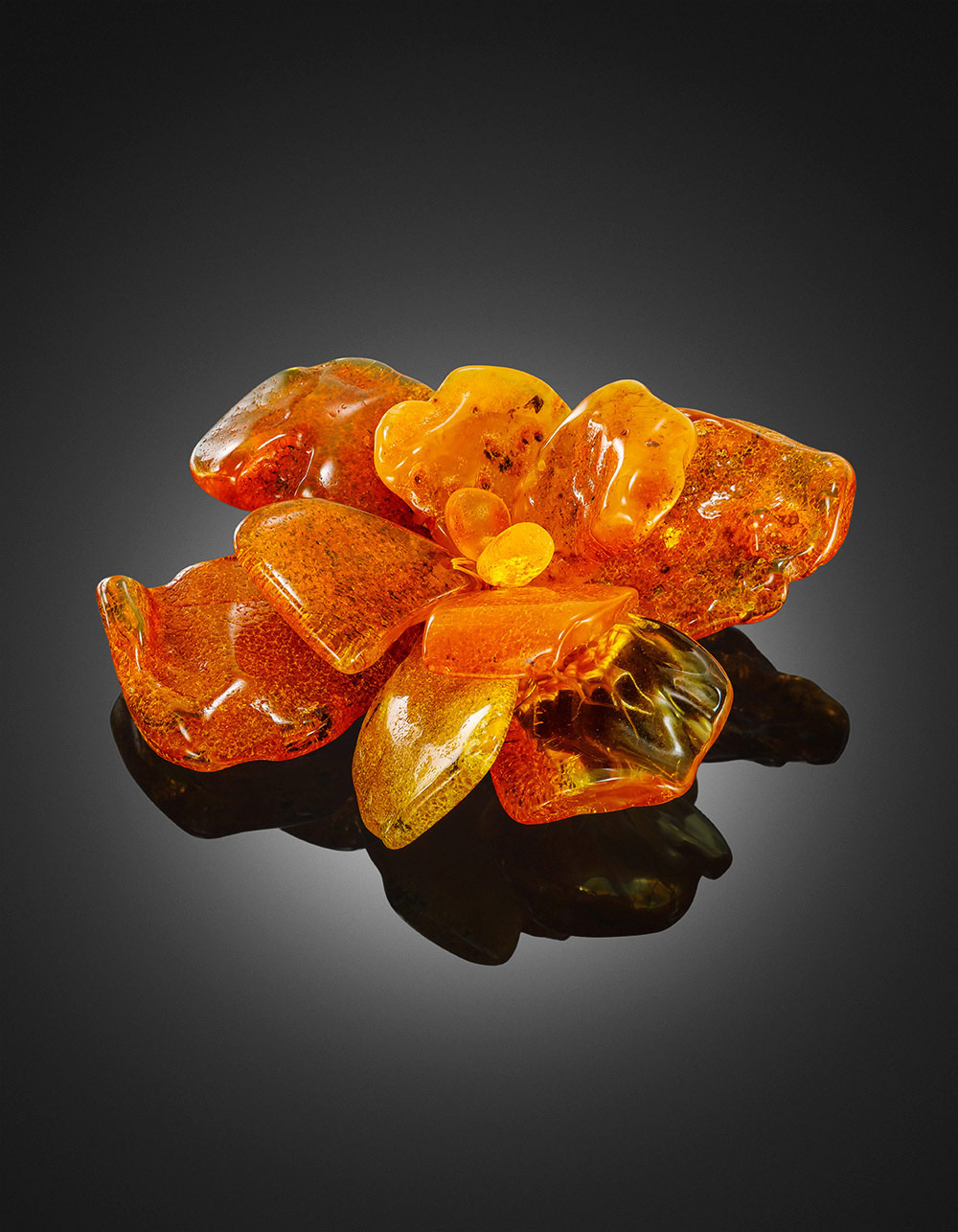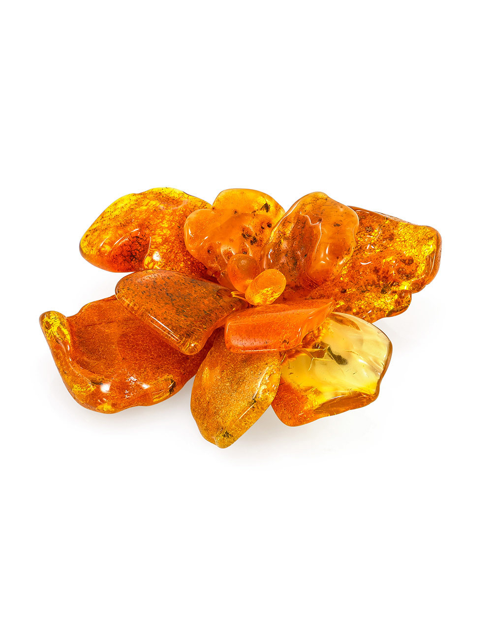 Брошь в виде цветка из натурального текстурного янтаря «Помпеи»
