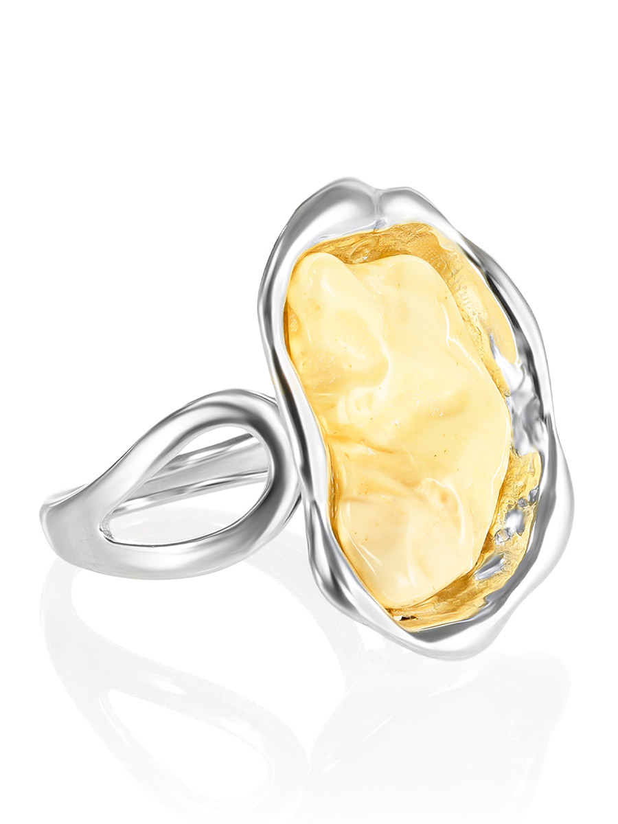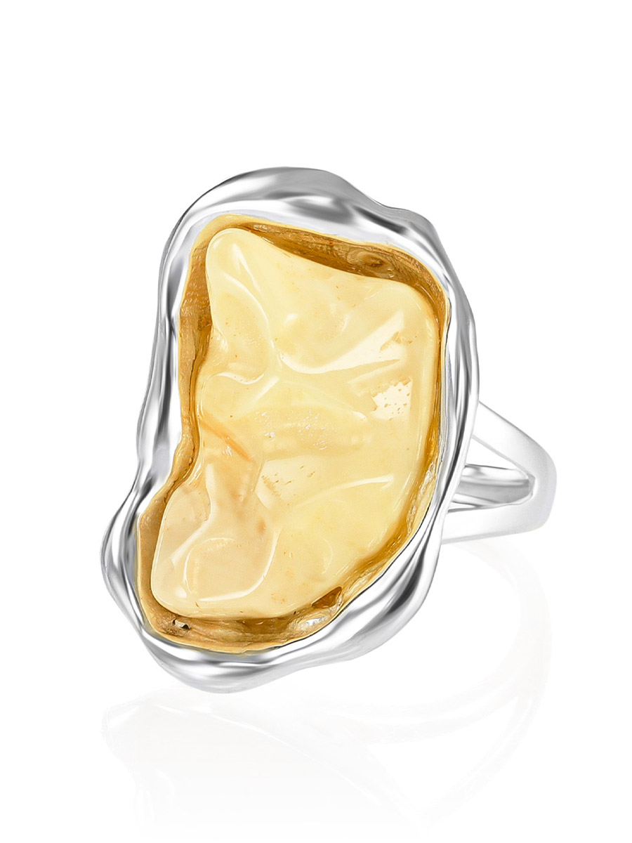 Броское кольцо с вставкой из цельного текстурного янтаря «Лагуна»