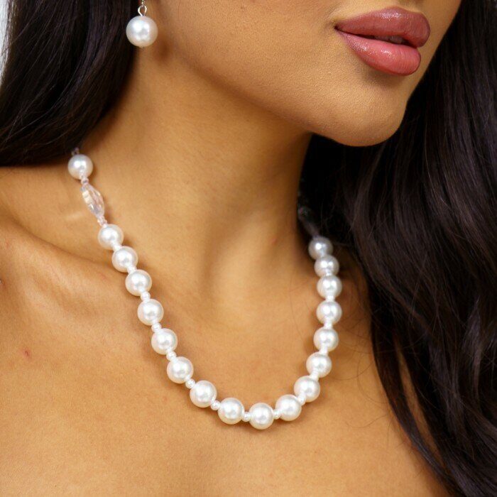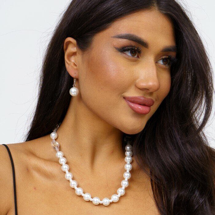 Комплект: бусы и серьги из жечуга, цвет перламутровый, 32155, арт.018.696