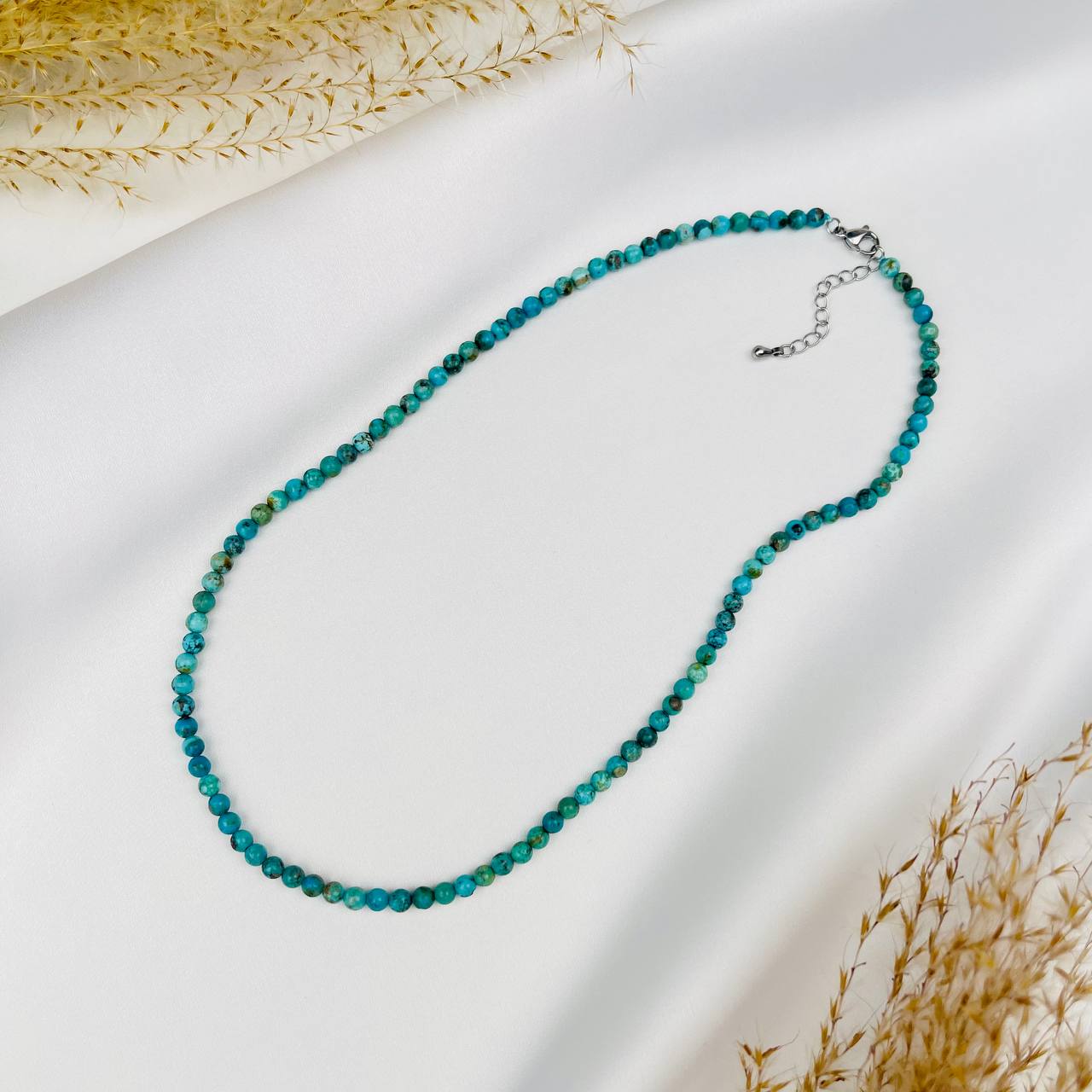 Цвет камня: Бирюзовый Камень: Бир..показатьюза Покрытие: Бижутерный сплав Диаметр: 4 мм Поверхность: Гладкий Производитель: Радуга Самоцветов (Россия) Тип замка: Карабин с цепочкойюза