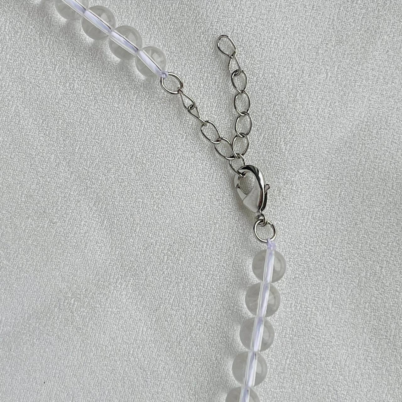 Цвет камня: Прозрачный Месторожде..показатьние: Бразилия Камень: Горный хрусталь Покрытие: Бижутерный сплав Диаметр: 6,5 мм Вязка: без узелка Поверхность: Гладкий Производитель: Радуга Самоцветов (Россия) Тип замка: Карабин с цепочкойние: Бразилия