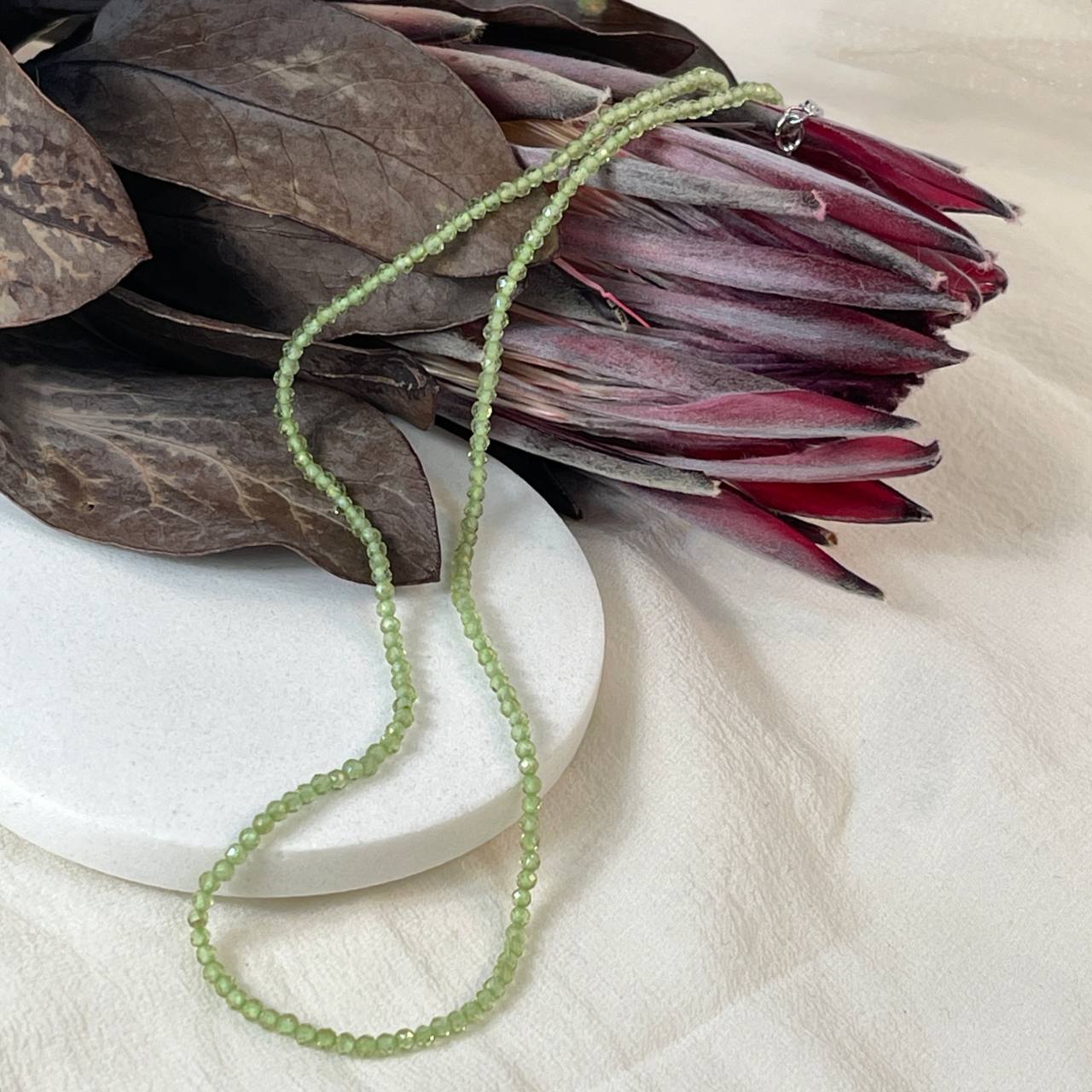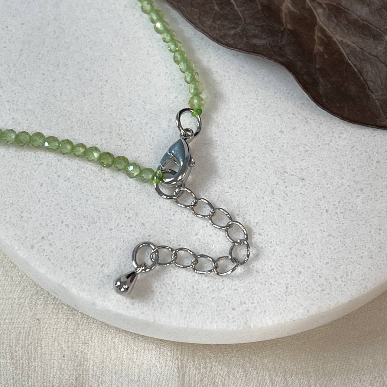 Цвет камня: Зелёный Месторождение..показать: США Камень: Хризолит Покрытие: Бижутерный сплав Диаметр: 2 мм Поверхность: Граненый Производитель: Радуга Самоцветов (Россия) Тип замка: Карабин с цепочкой: США