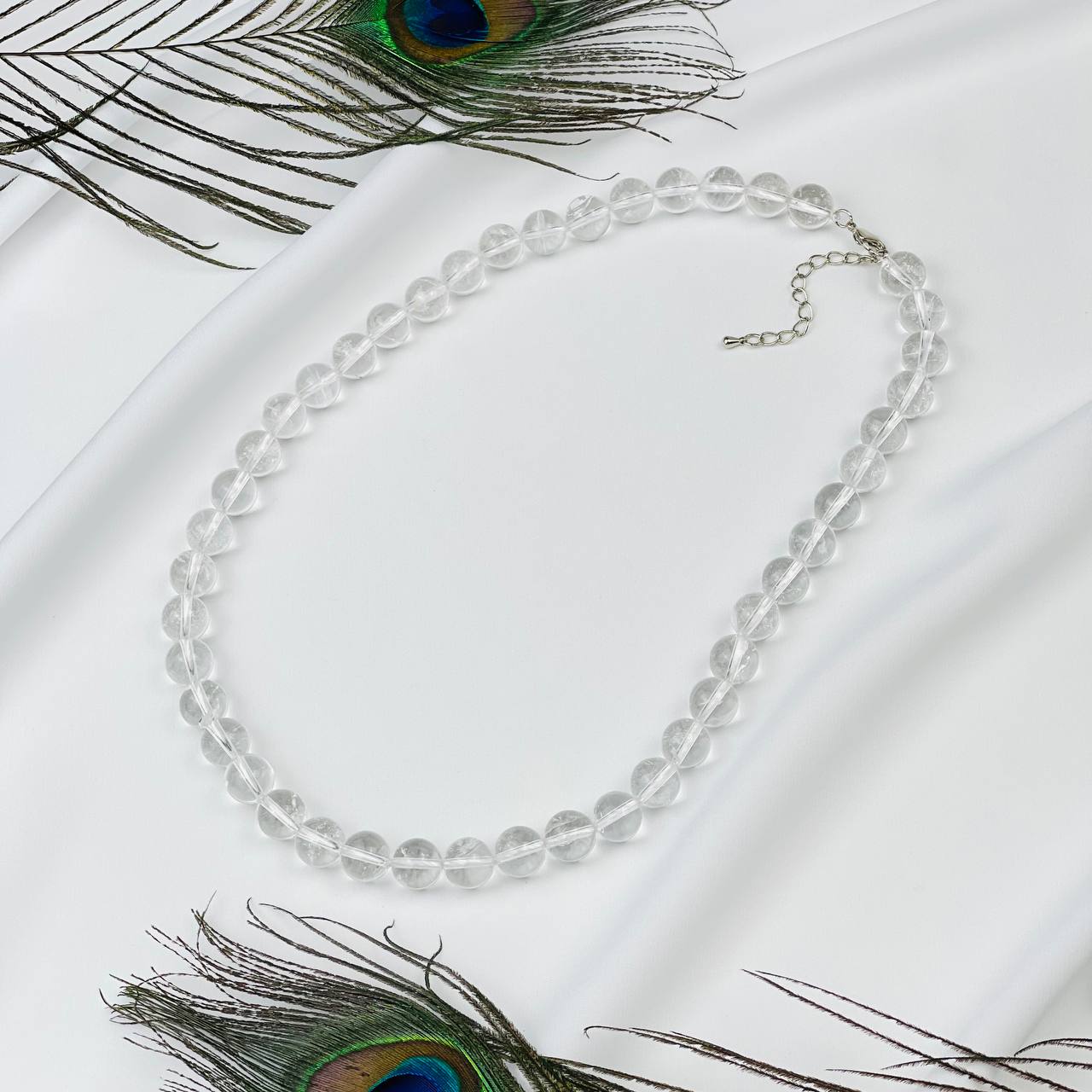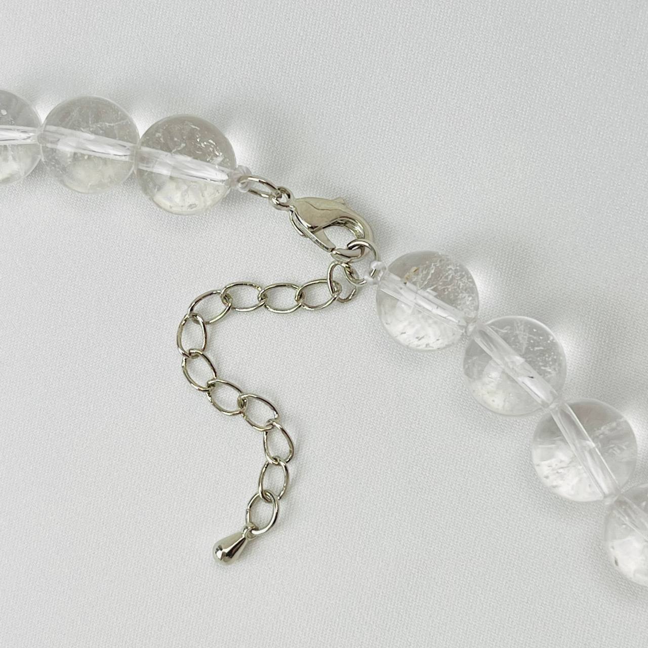 Цвет камня: Прозрачный Месторожде..показатьние: Бразилия Камень: Горный хрусталь Покрытие: Бижутерный сплав Диаметр: 10 мм Вязка: с узелком Поверхность: Гладкий Производитель: Радуга Самоцветов (Россия) Тип замка: Карабин с цепочкойние: Бразилия