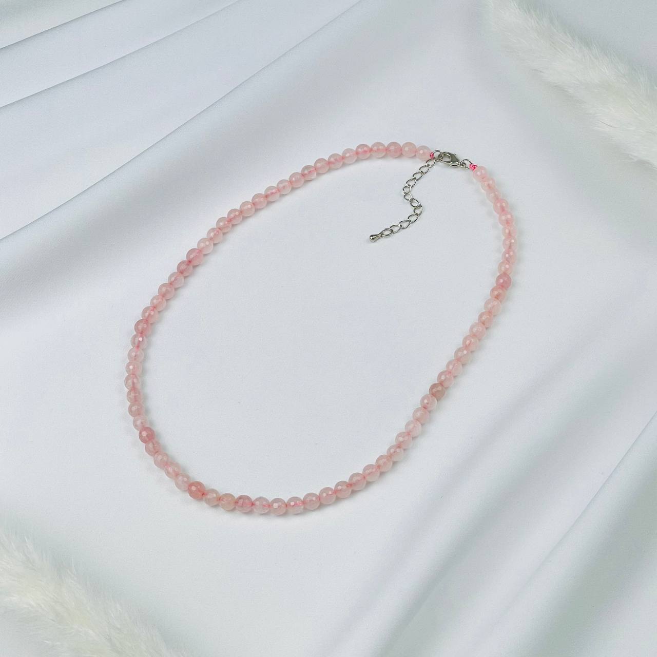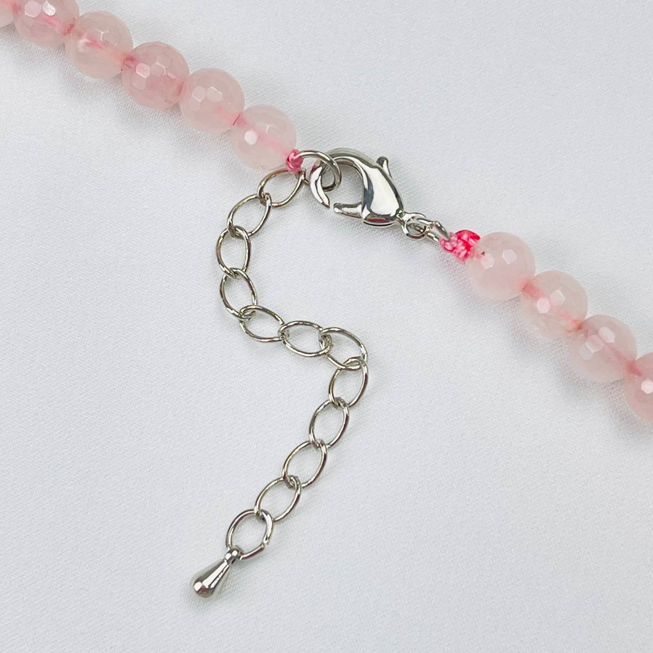 Цвет камня: Розовый Месторождение..показать: Бразилия Камень: Розовый кварц Покрытие: Бижутерный сплав Диаметр: 6 мм Поверхность: Граненый Производитель: Радуга Самоцветов (Россия) Тип замка: Карабин с цепочкой: Бразилия