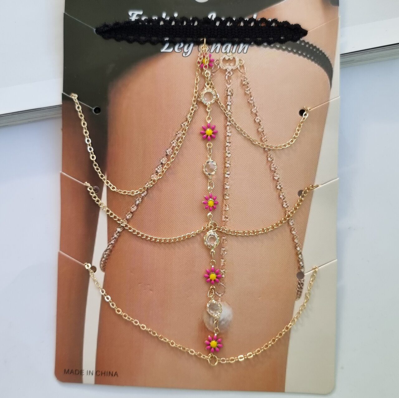 Описание Набедренная повязка на ногу с цепью и декоративными элементами, на резинке. Цепочку можно надеть под шорты, сарафан или юбку, также украсить свой образ в вечернем наряде. С подвязкой на ногу Вы всегда будете неотразимы и ловить на себе восхищенные взгляды. Длина резинки: 36 (+7) см. Максимальная длина цепей: 19 см. Состав: металл, ткань. Вес: 17 гр.