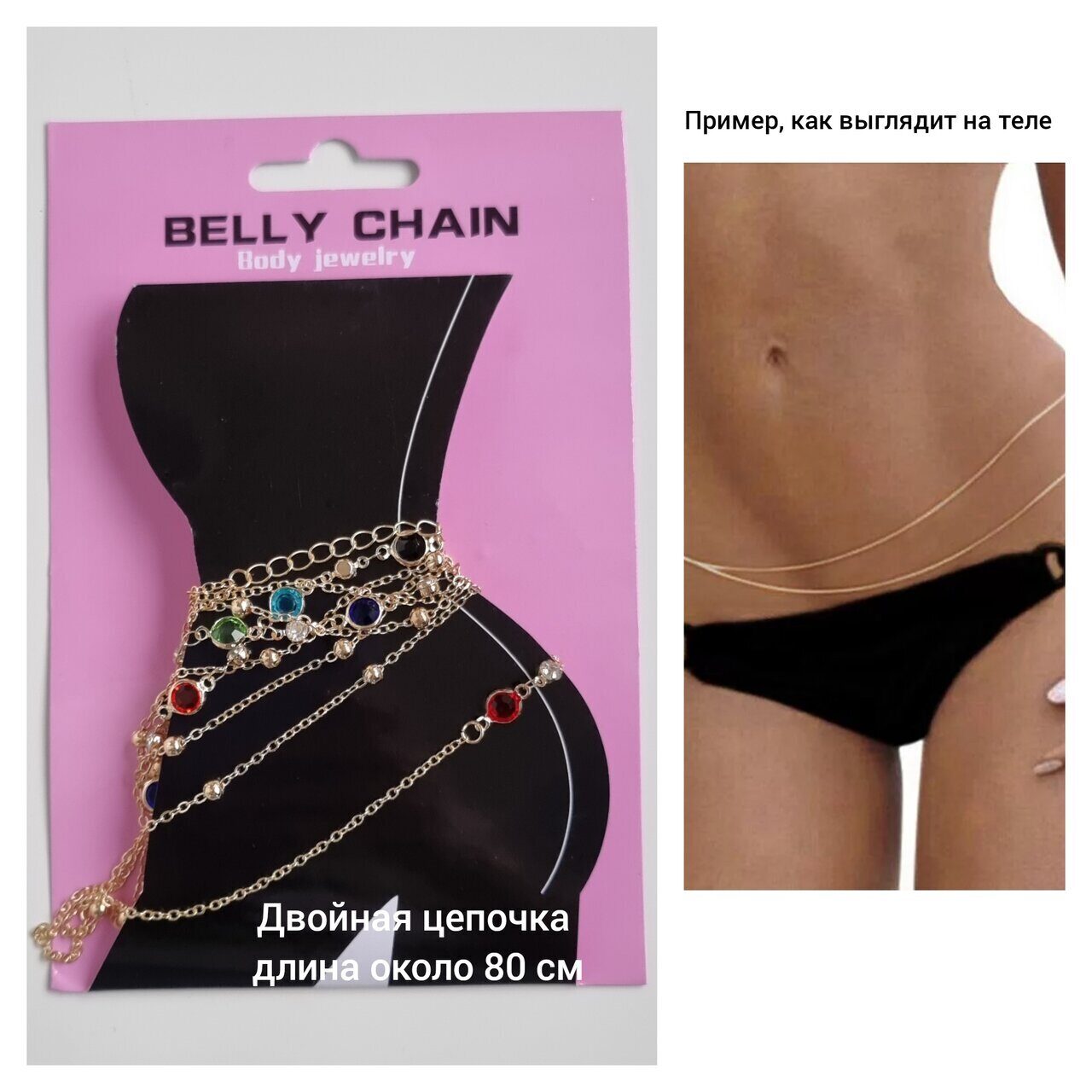 Цепочка на тело (живот), с цветными камушками, со стразами, цвет желтый, 30122, арт.606.981
