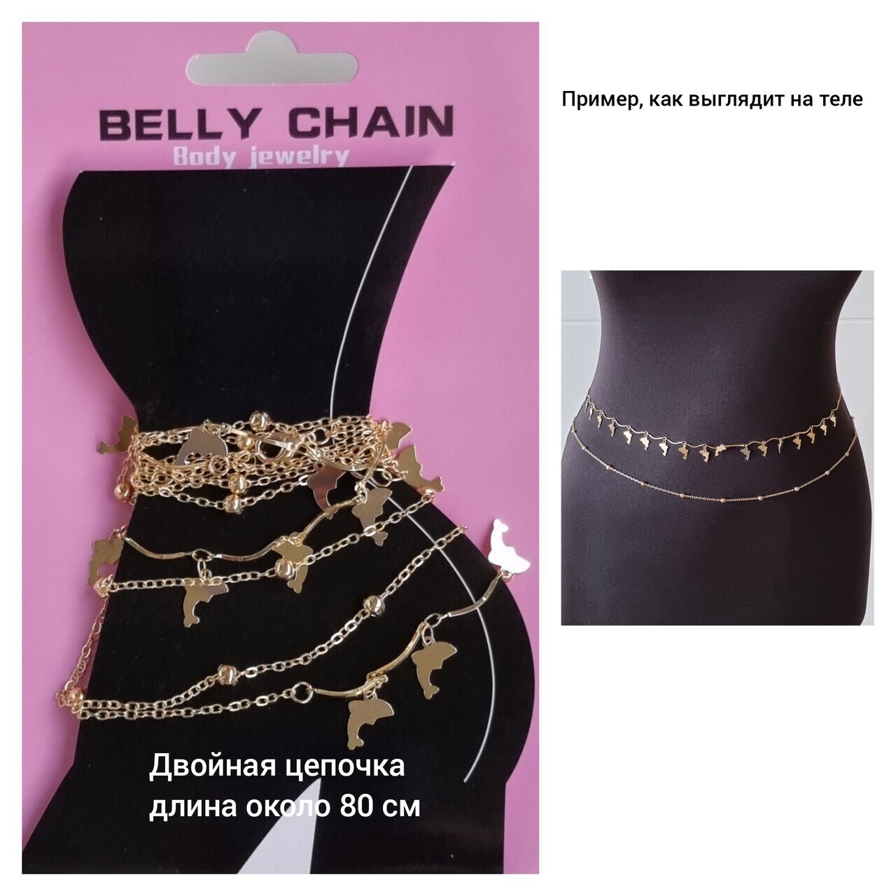 Цепочка на тело (живот), с дельфинами, цвет желтый, 30122, арт.606.975