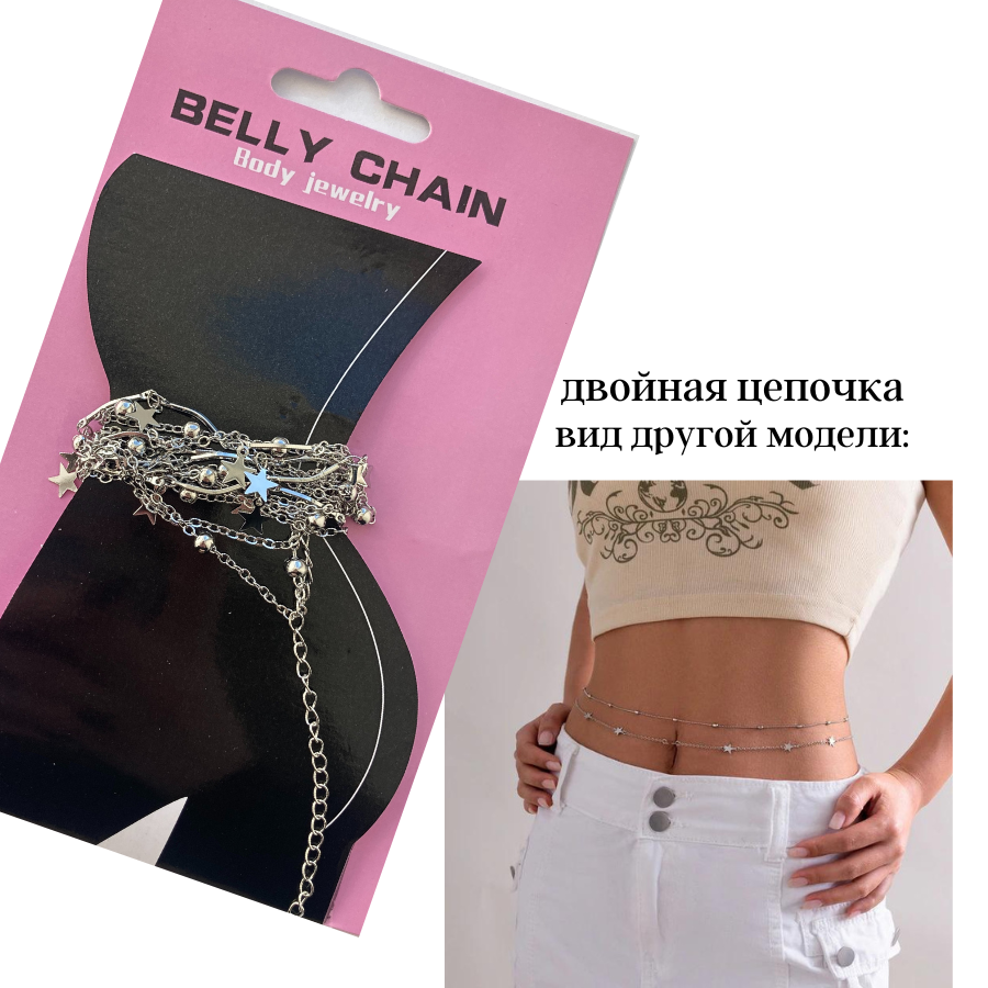 Цепочка на тело (живот), с серебристыми звездочками, арт. 806.016