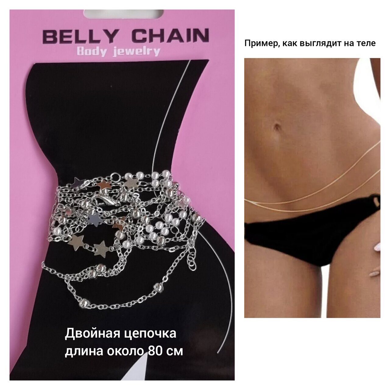 Цепочка на тело (живот), с жемчужинами и звездочками, цвет серебро, 30122, арт.606.988