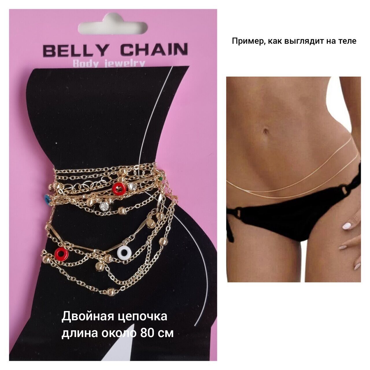 Цепочка на тело (живот), со стразами, цвет желтый, 30122, арт.606.982