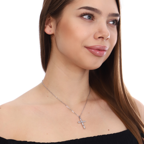 Цепочка с подвеской крестик, покрытие: посеребрение,цвет камней: белый, 45909, арт. 018.386