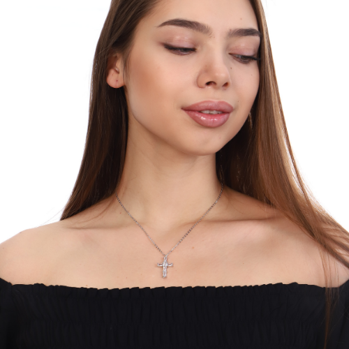 Цепочка с подвеской крестик, покрытие: посеребрение,цвет камней: белый, 45909, арт. 018.392