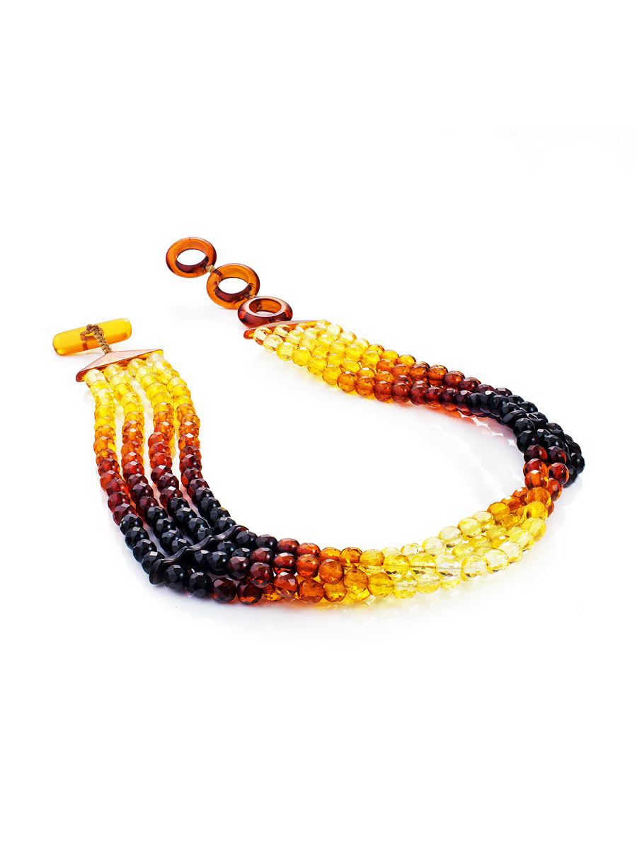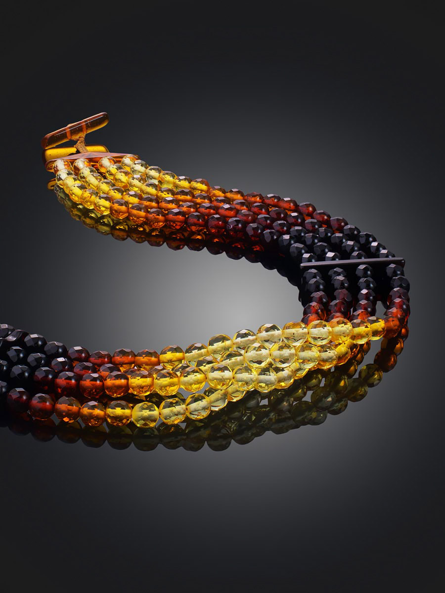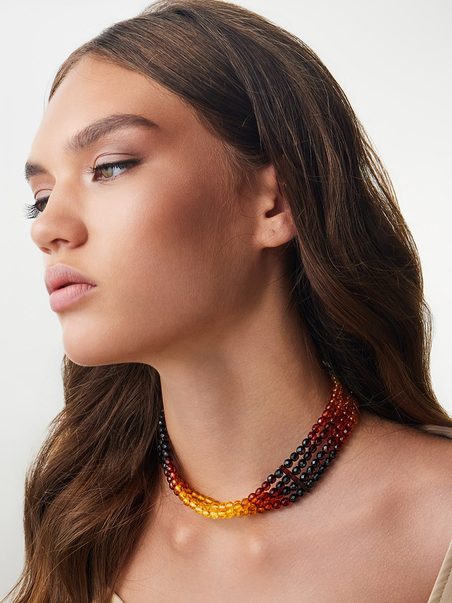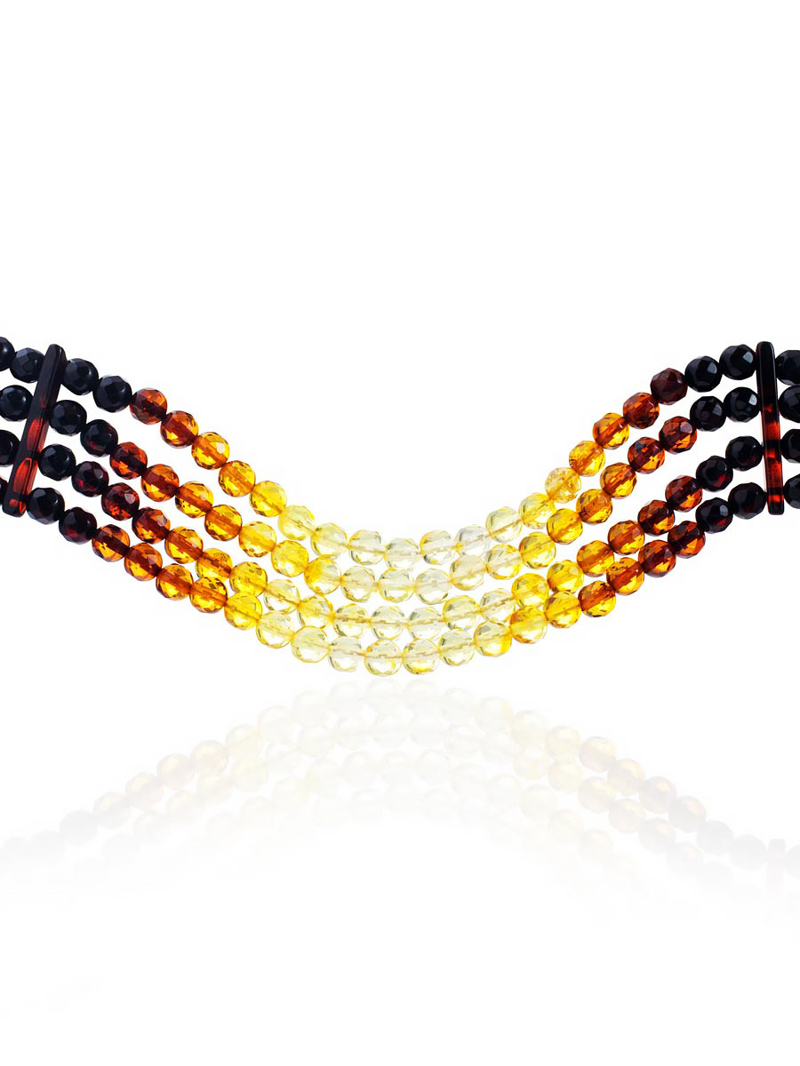 Четырехрядное колье из натурального янтаря «Карамель алмазная грань»