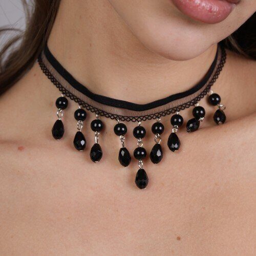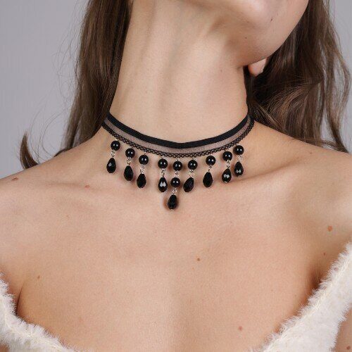 Чокер ажурный с подвесками, цвет: черный, арт. 018.401