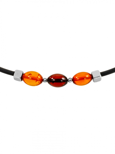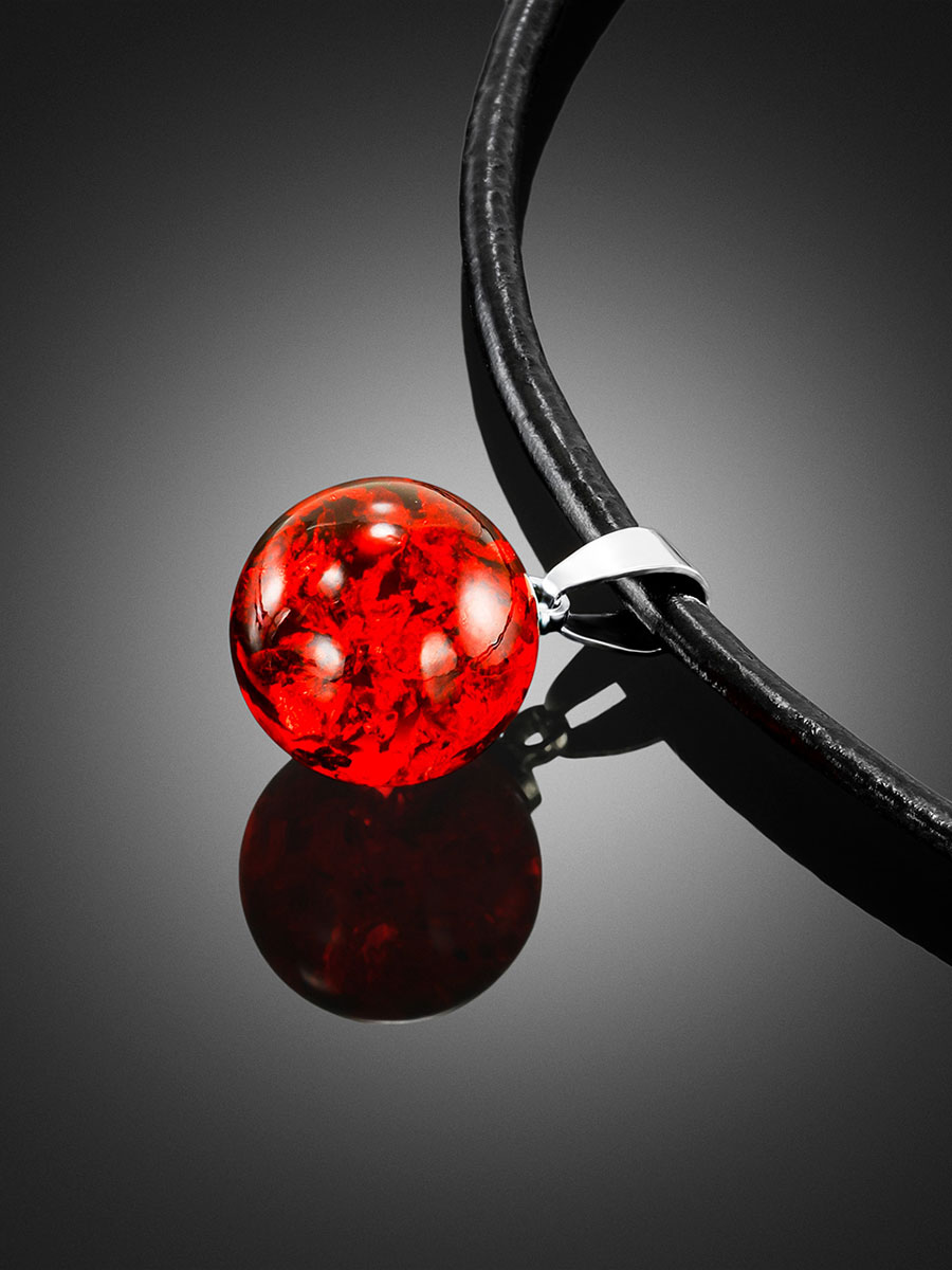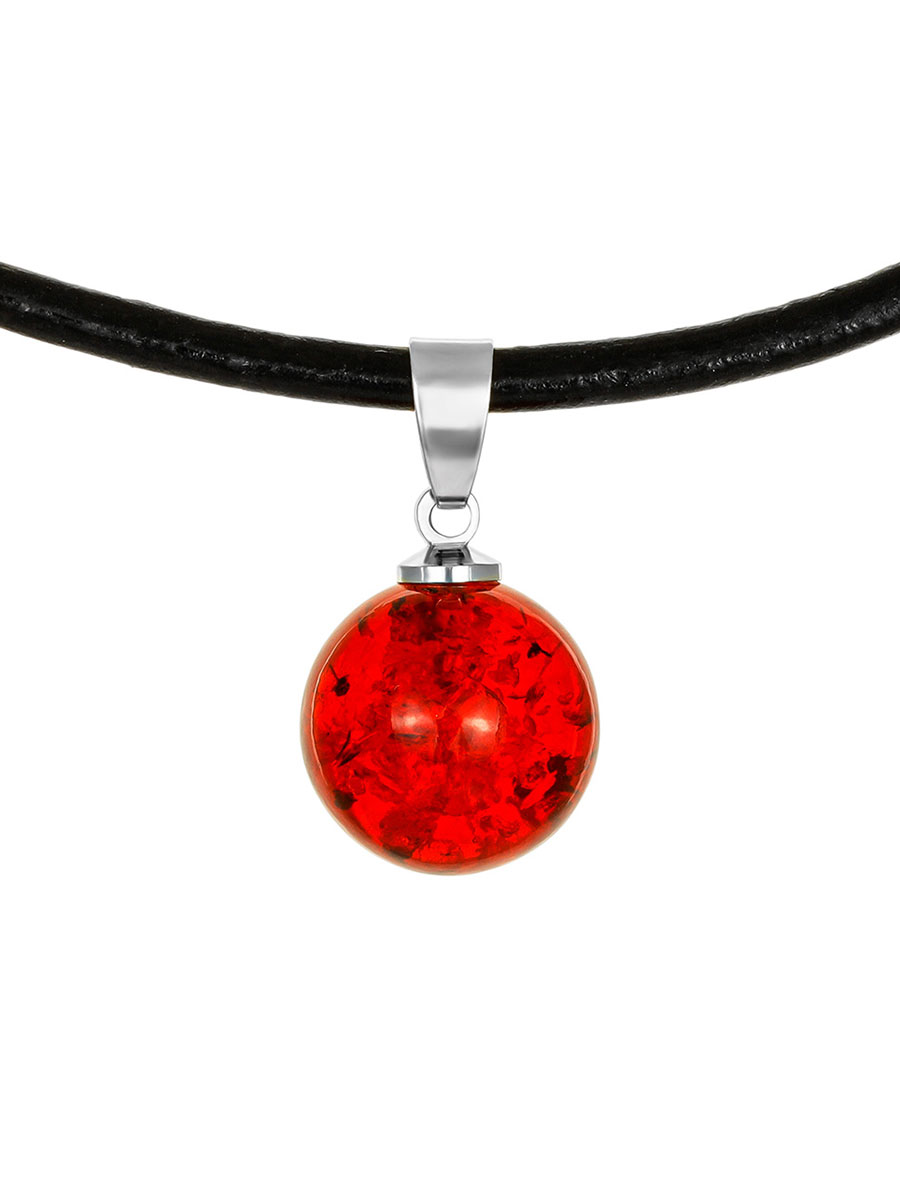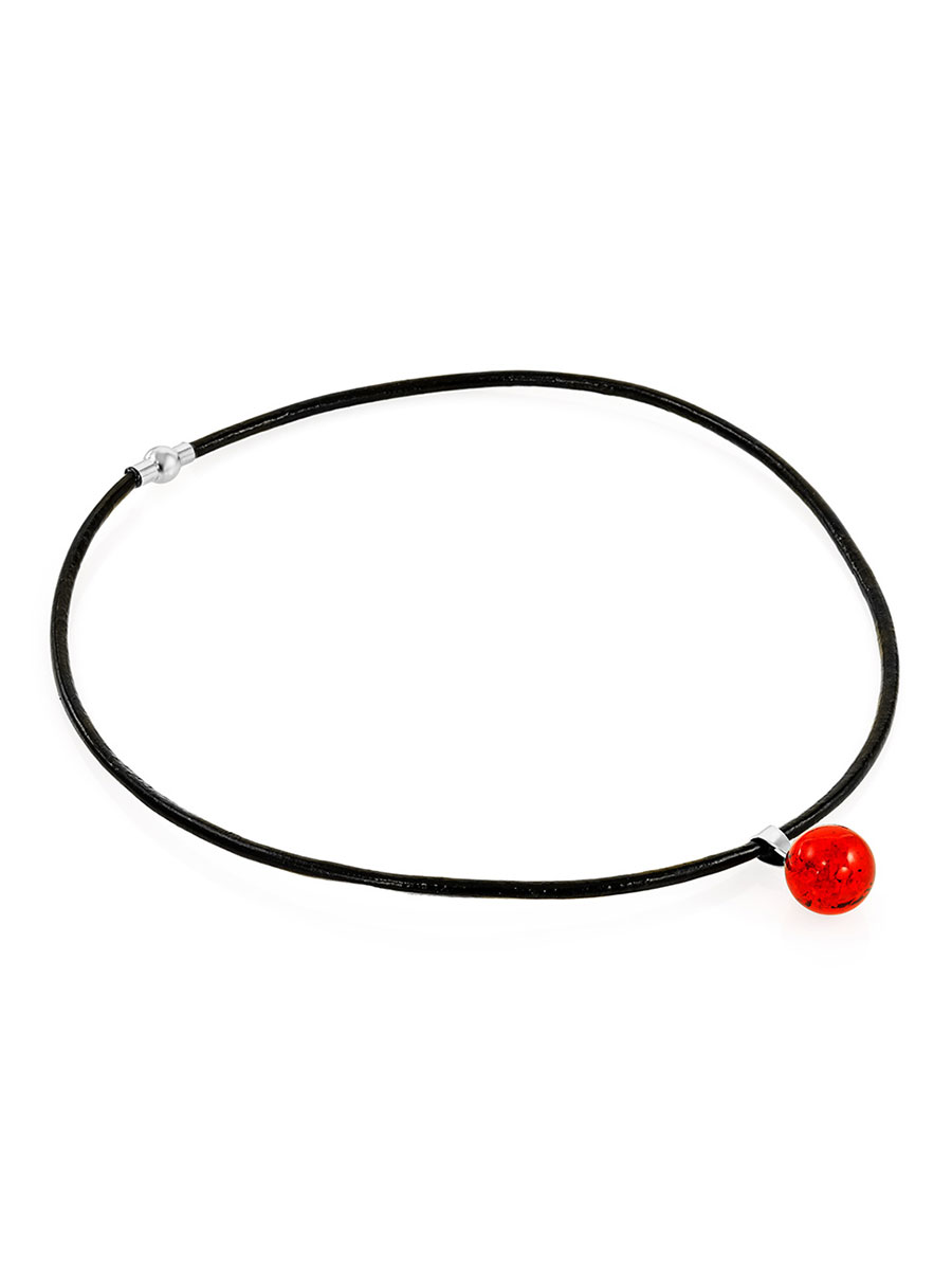 Чокер из кожаного шнура с янтарной бусиной алого цвета