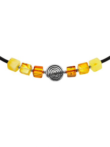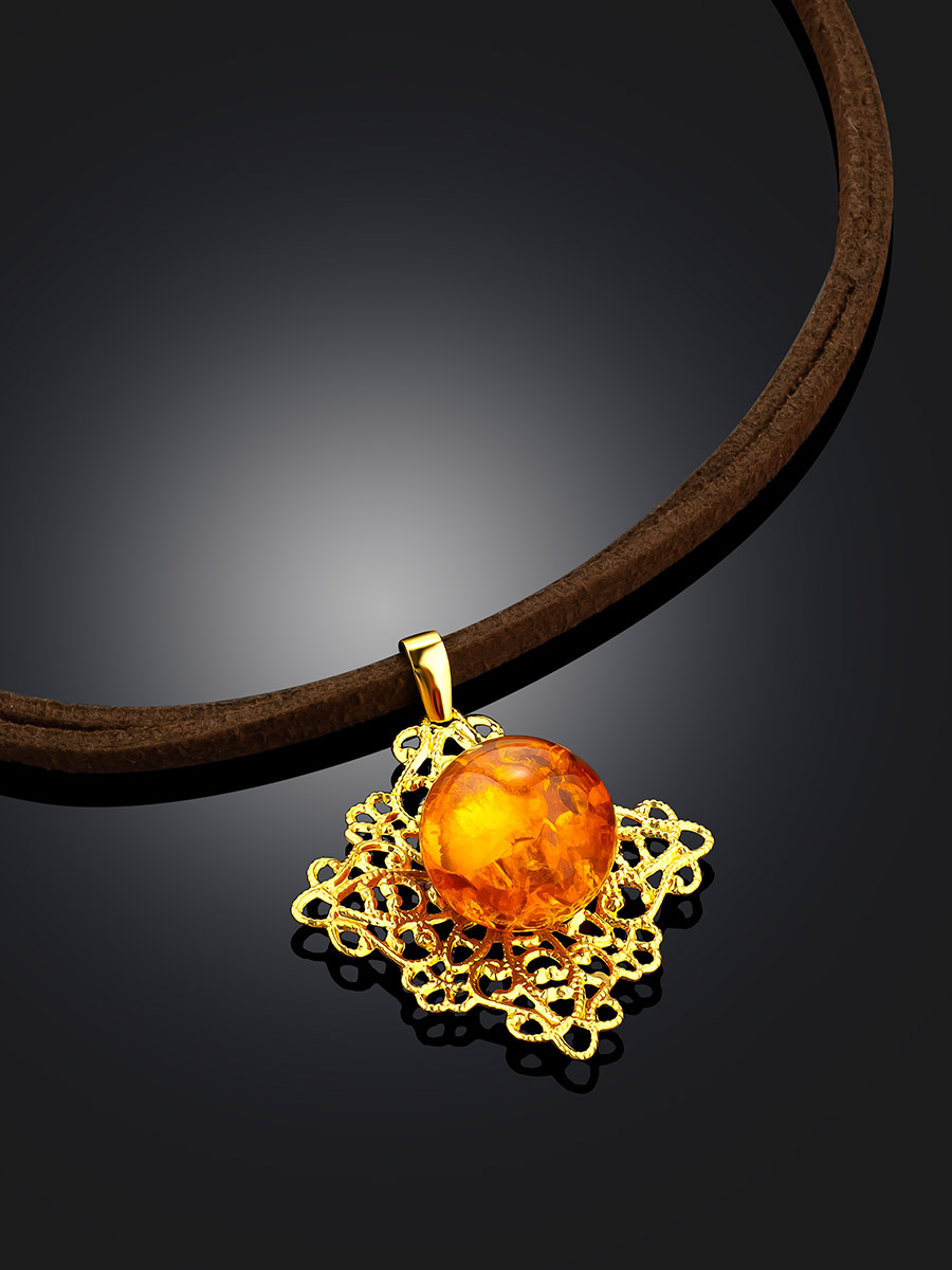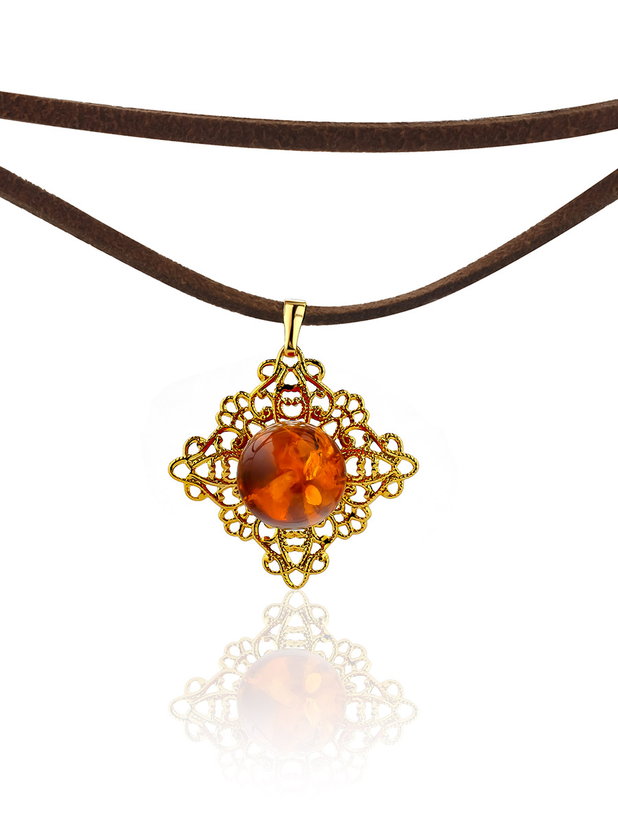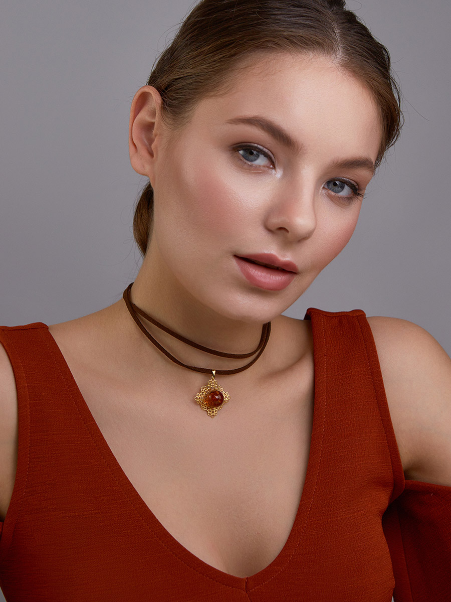 Чокер с изящной ажурной подвеской, украшенной янтарём
