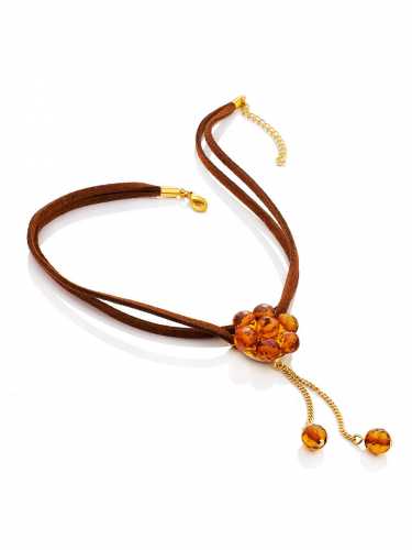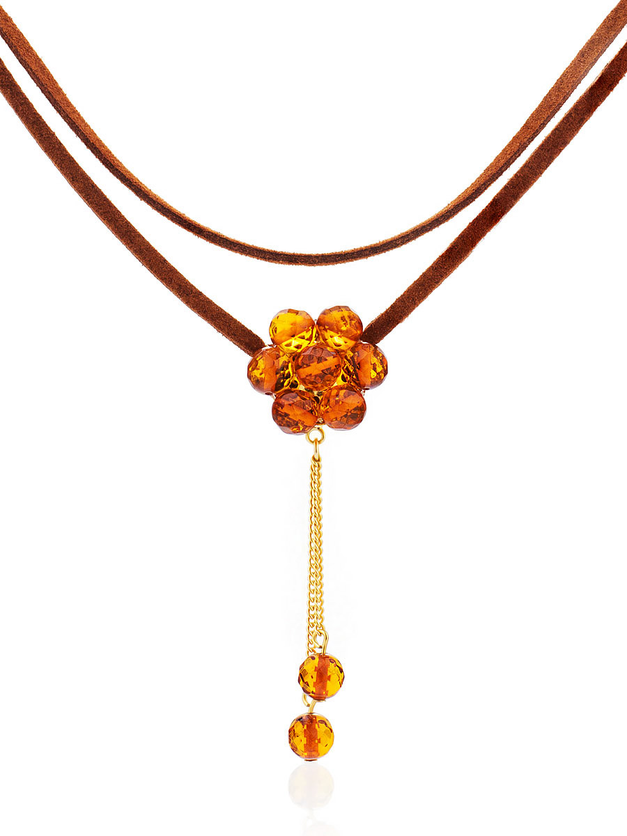 Чокер с подвеской-цветочком из натурального гранёного янтаря