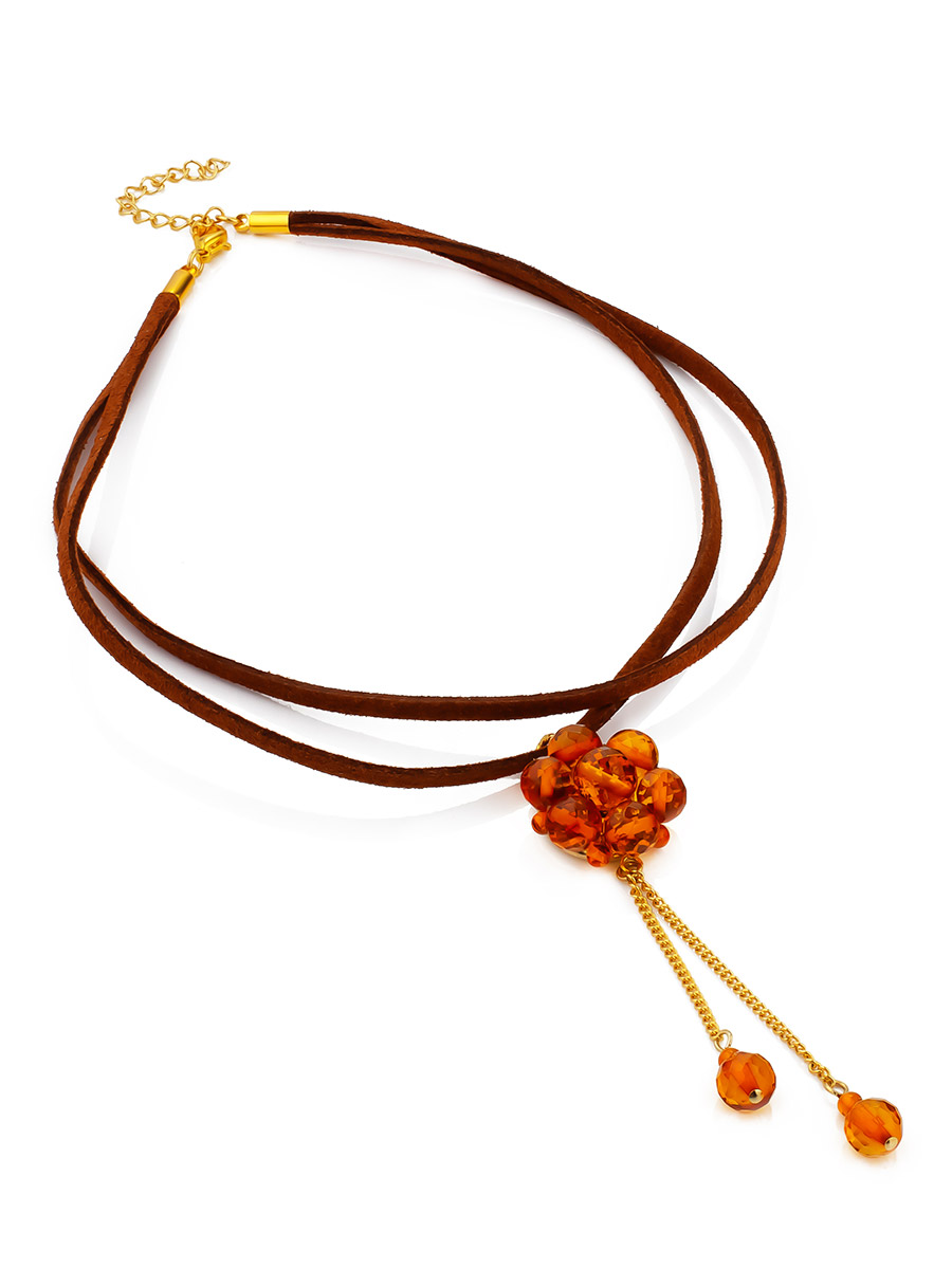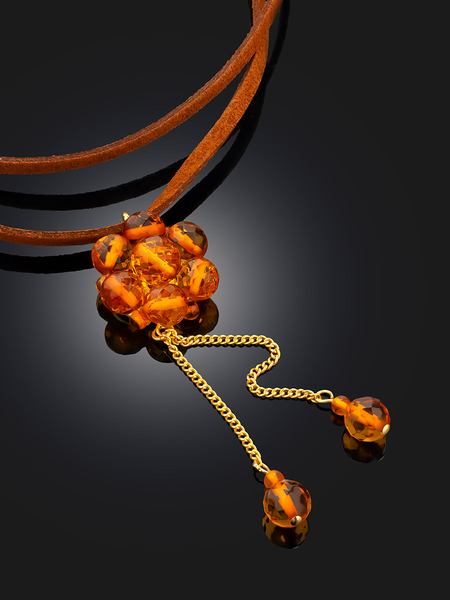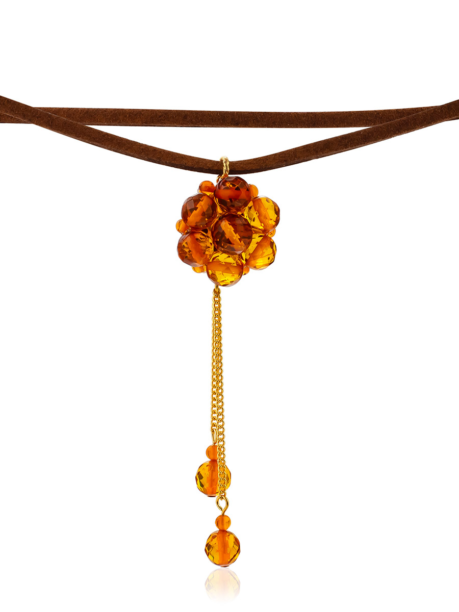 Чокер с подвеской-цветочком из натурального гранёного янтаря
