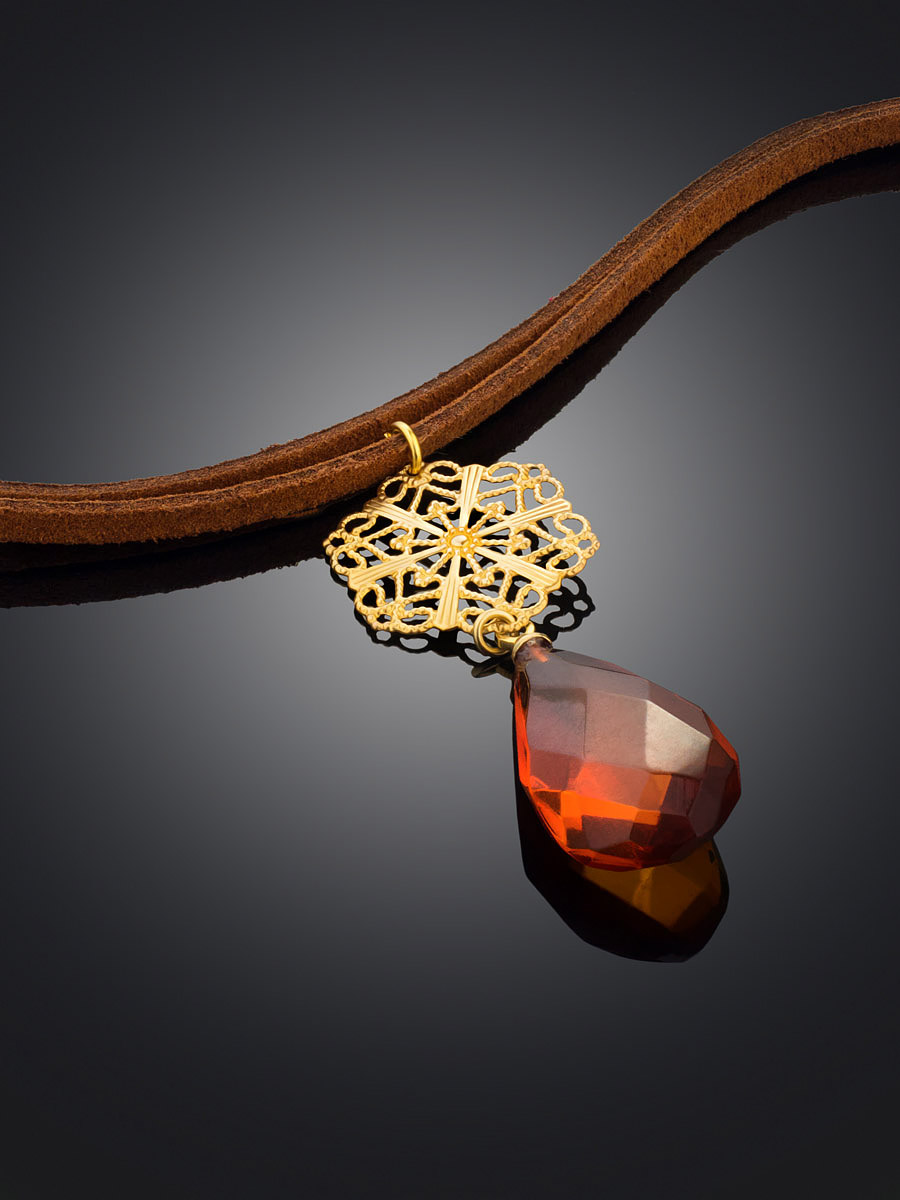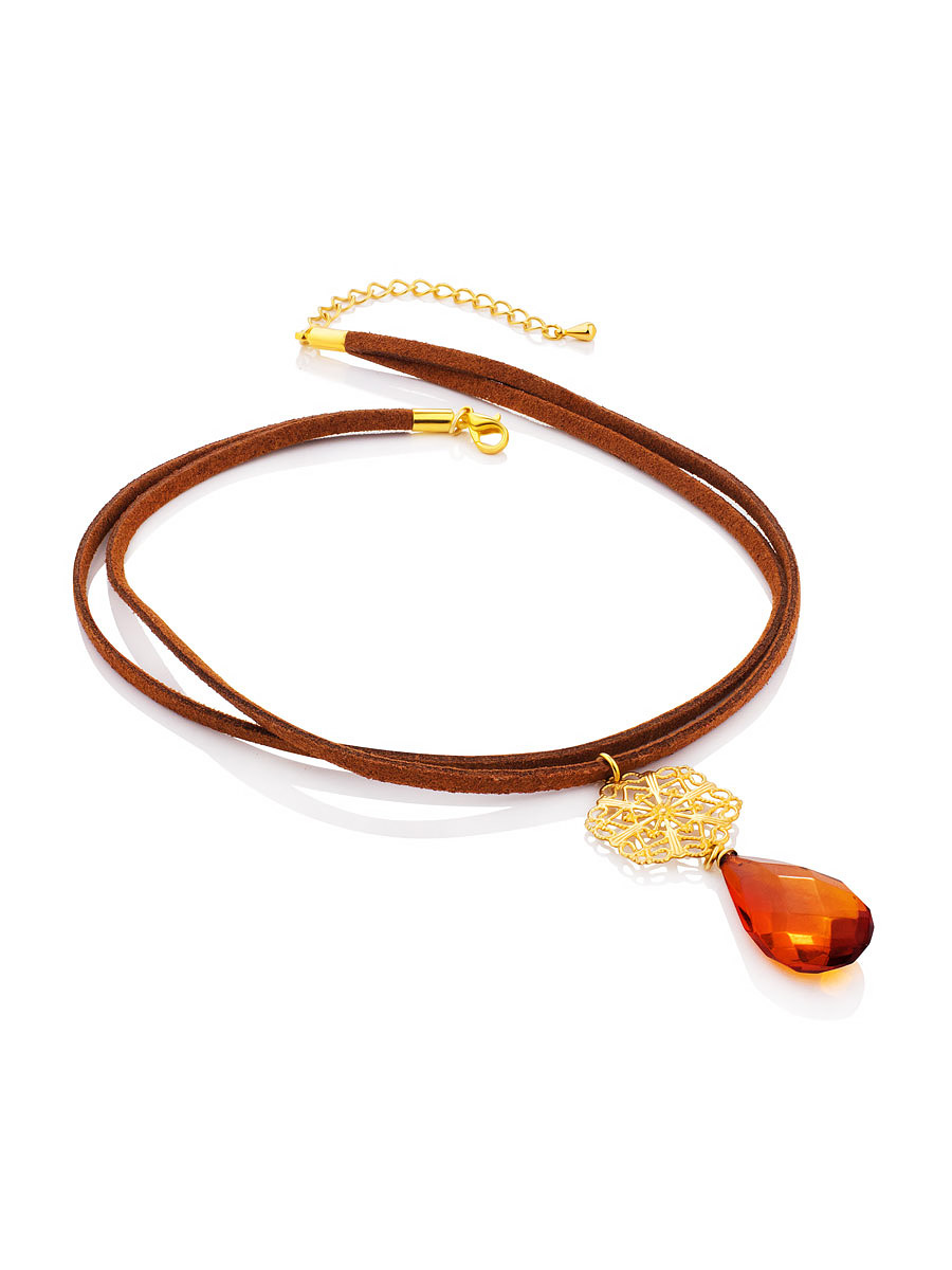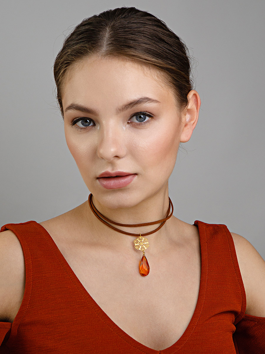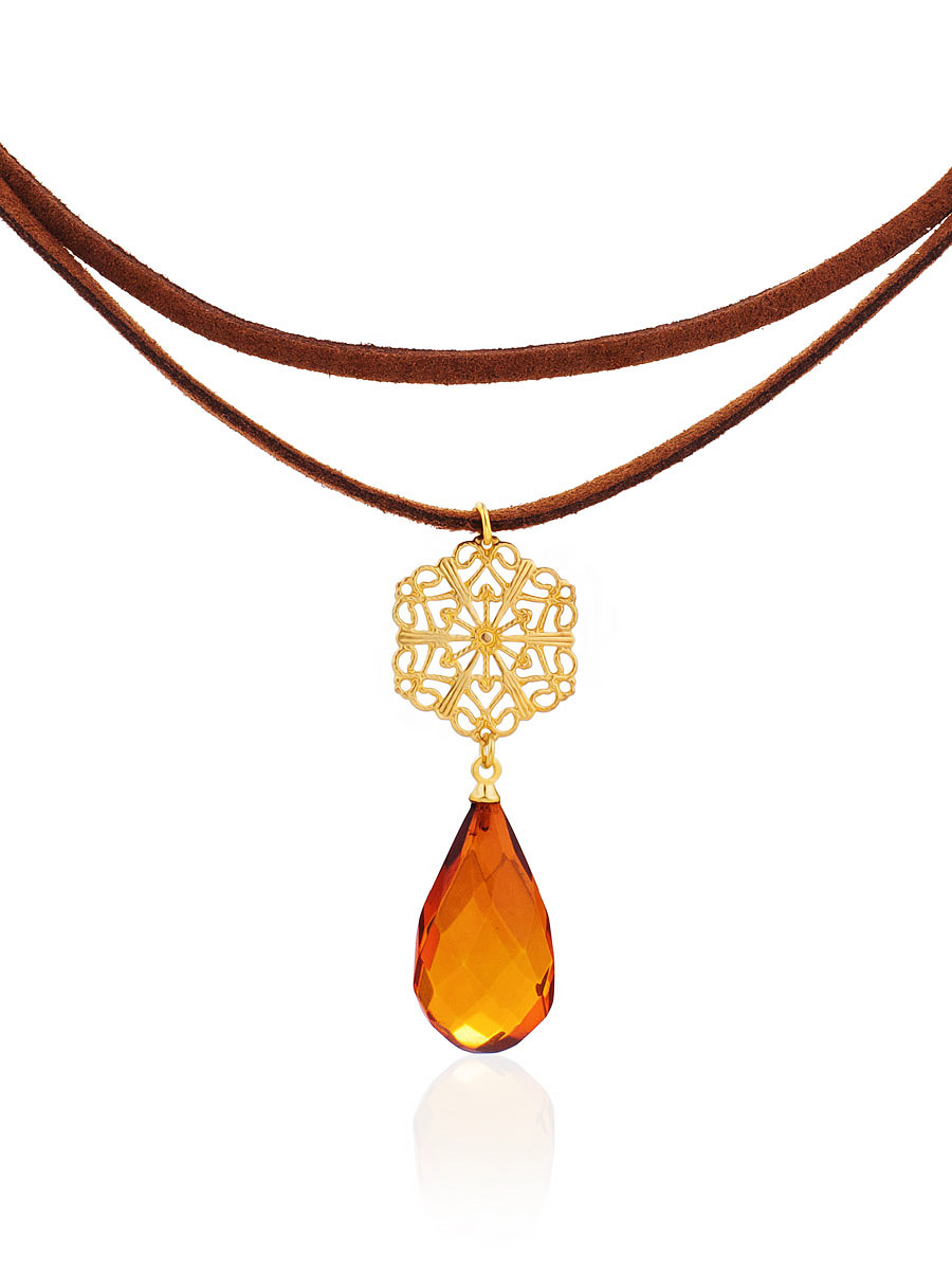 Чокер с подвеской из натурального янтаря и ажурным декором