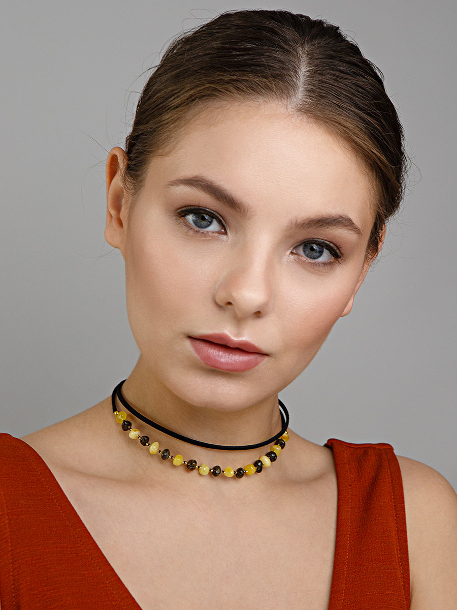 Чокер в этническом стиле с натуральным балтийским янтарём