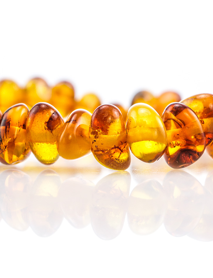 Детский браслет «Галька» из натурального балтийского янтаря тёмно-коньячного цвета