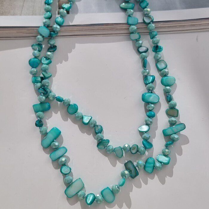 Длинное колье из натуральных камней, цвет: бирюза, арт.018.796
