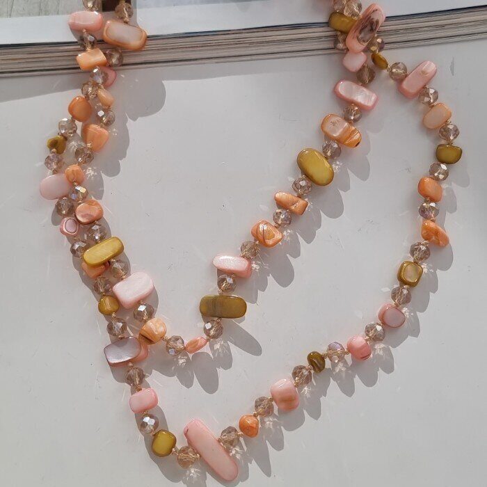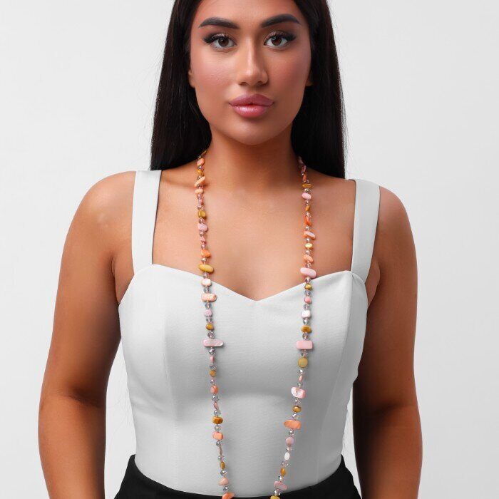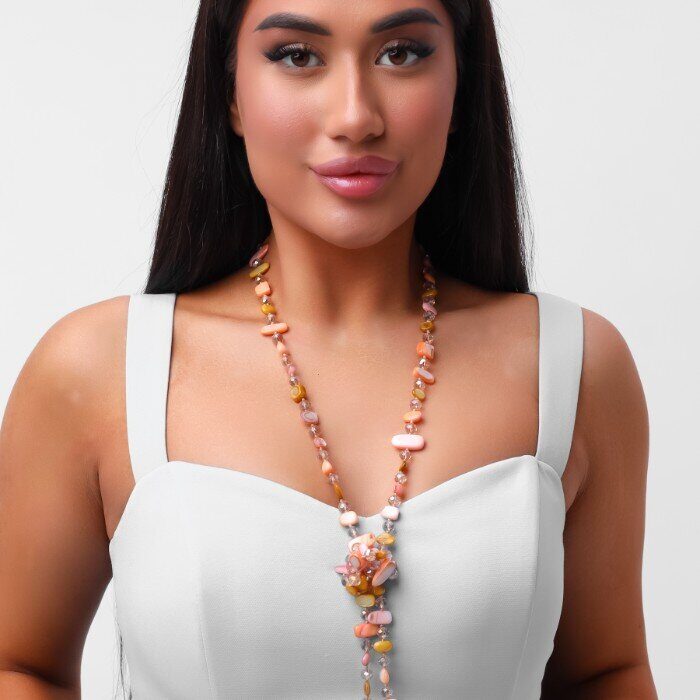 Длинное колье из натуральных камней, цвет: розовый, горчичный, оранжевый, арт.018.795