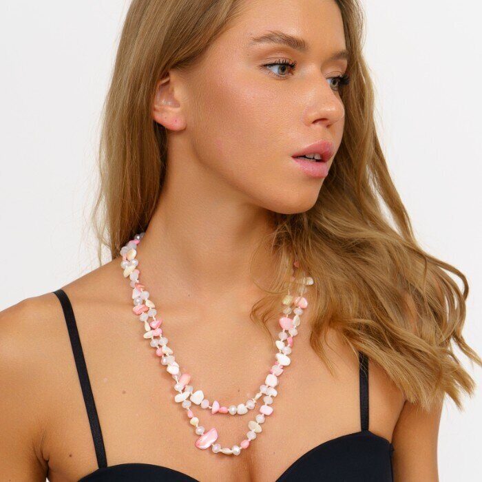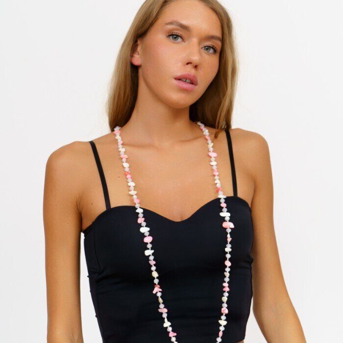 Длинное колье из натуральных камней, цвет: розовый, серый и молочный, арт.018.803