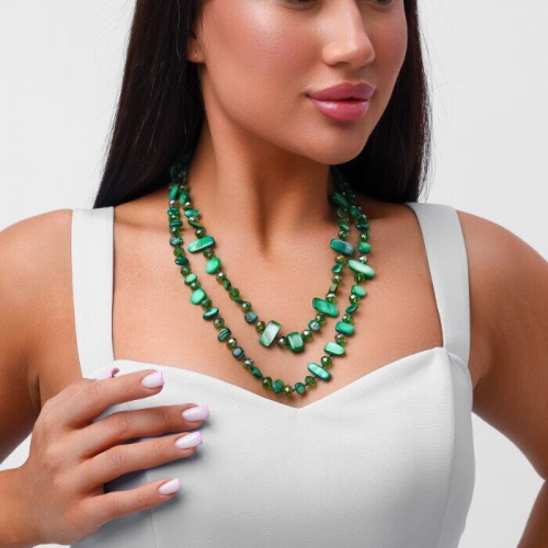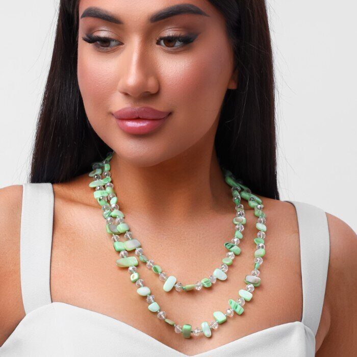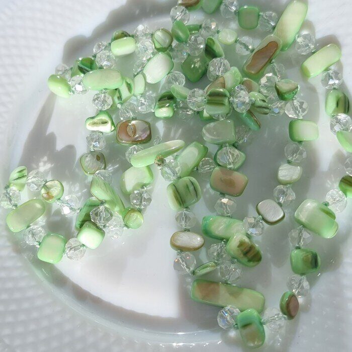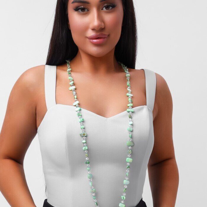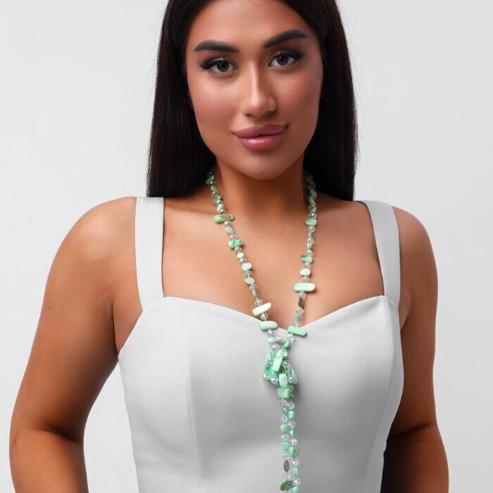 Длинное колье из натуральных камней, цвет: салатовый и прозрачный, арт.018.793
