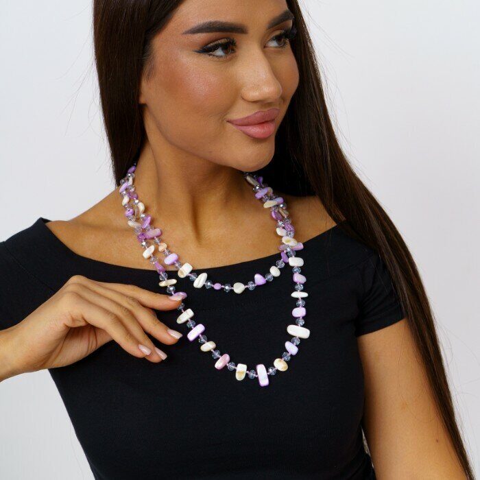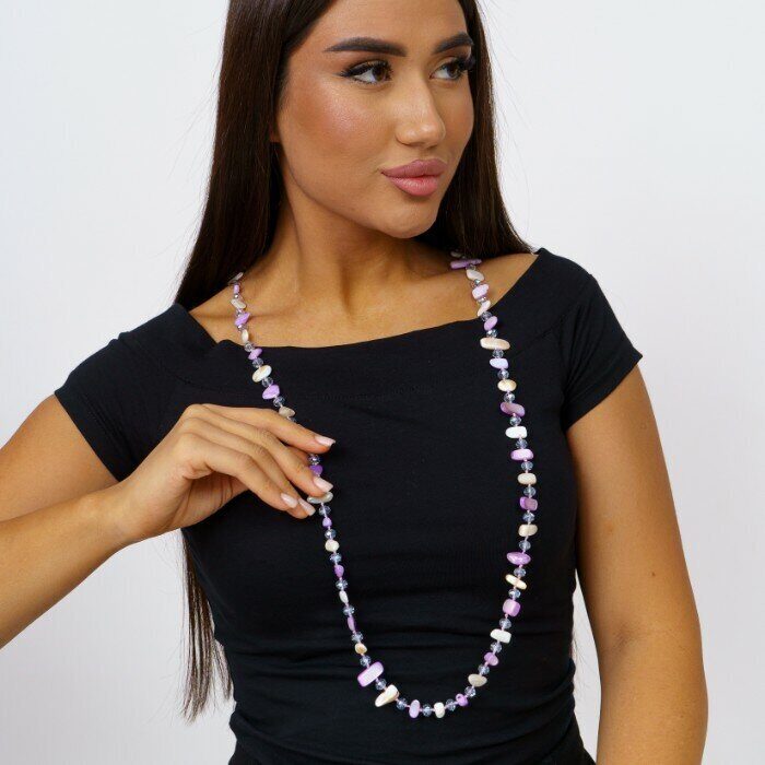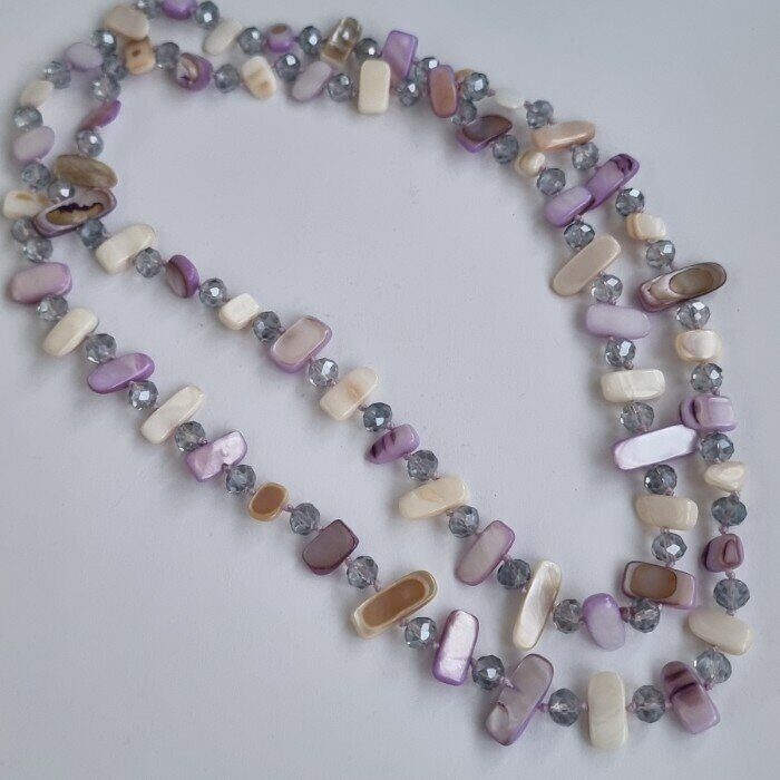 Длинное колье из натуральных камней, цвет: сиреневый и бежевый, арт.018.756