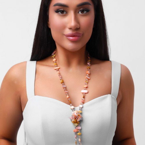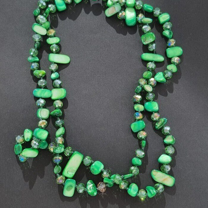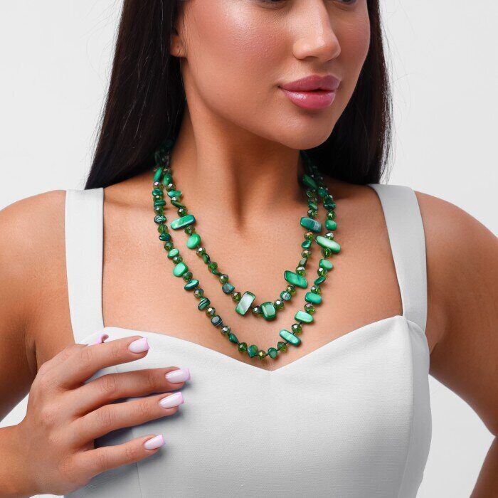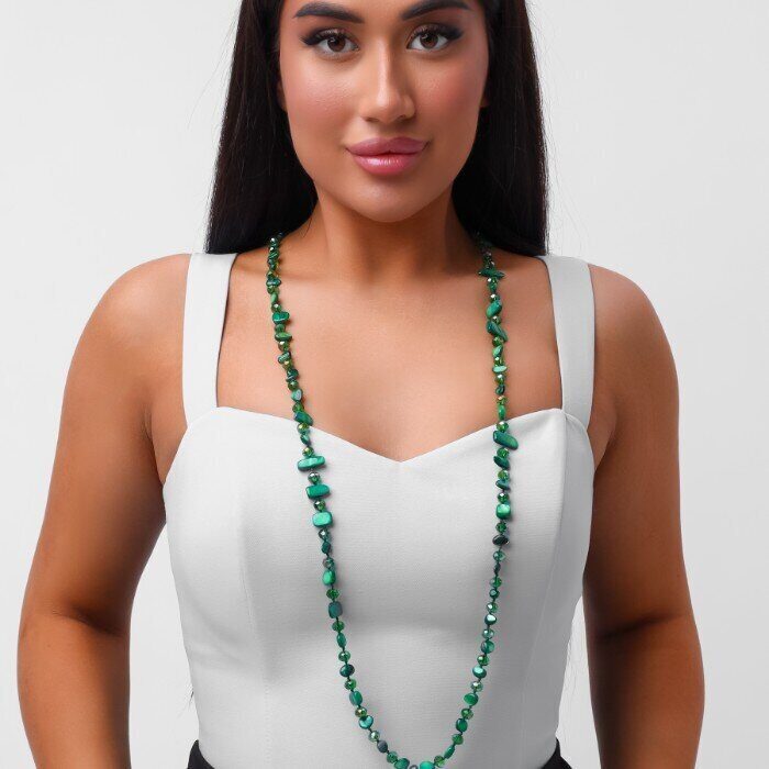 Длинное колье из натуральных камней, цвет: темно-зеленый, арт.018.794