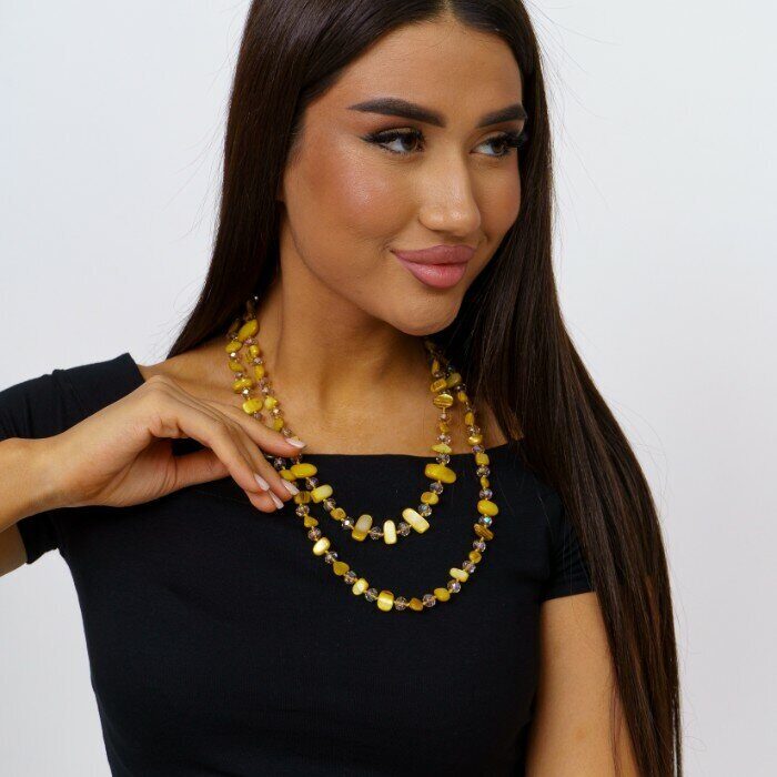 Длинное колье из натуральных камней, цвет: желтый, арт.018.754