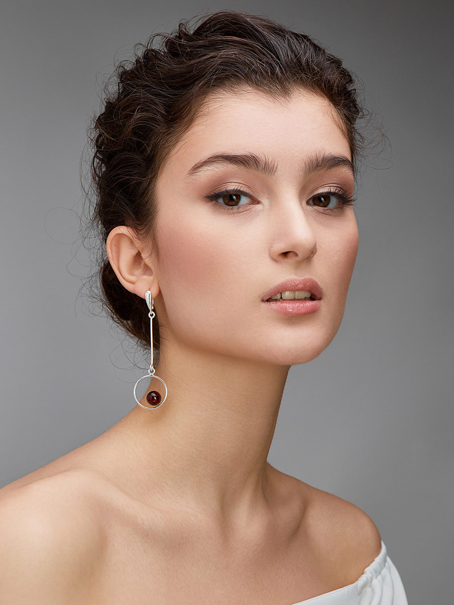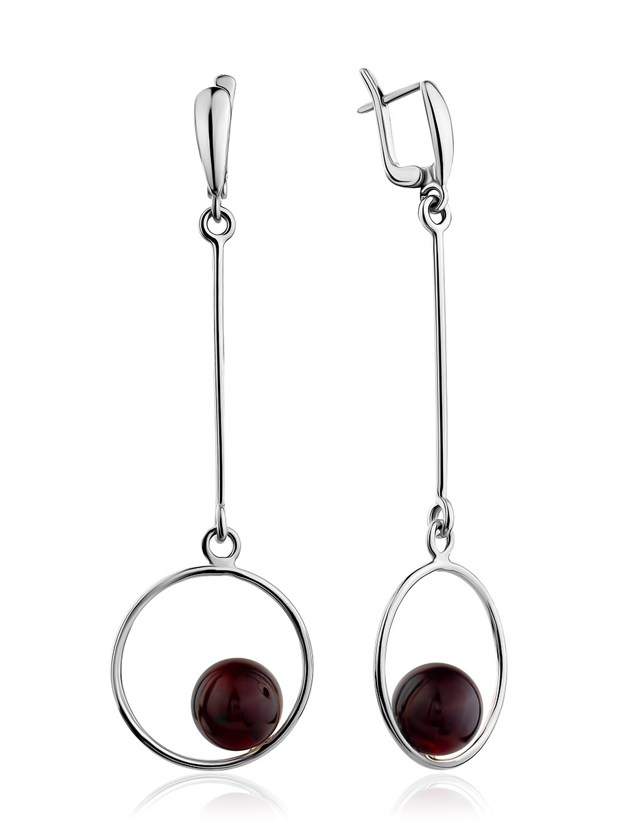 Длинные геометрические серьги из вишнёвого янтаря «Юпитер»