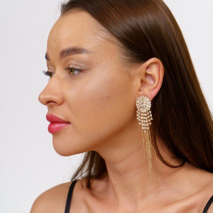 Клипсы "Вечерние" цвет золотистый, камень прозрачный переливающийся, арт. 018.662