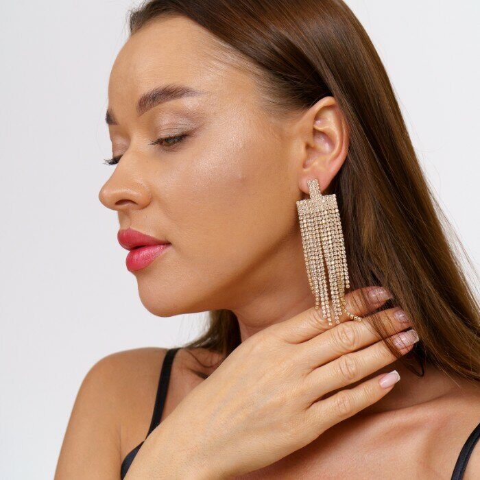 Клипсы "Вечерние" цвет золотистый, камень прозрачный переливающийся, арт. 018.663