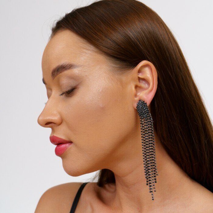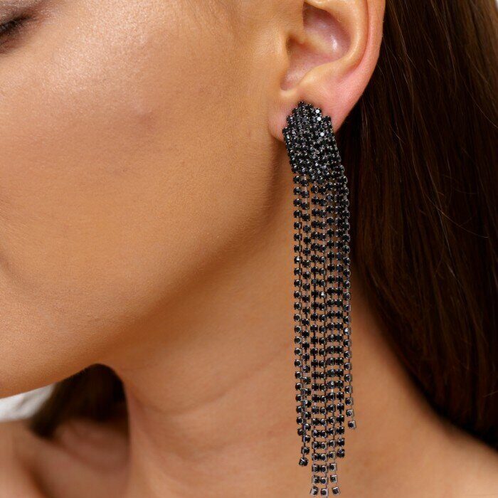 Описание Клипсы "Вечерние" женские, цвет серебристый, камень черный переливающийся. Размер: 11,5*1,5 см. вес: 14 гр.