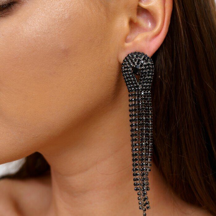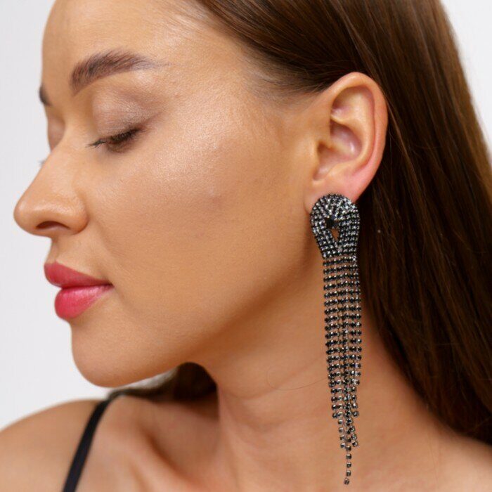 Описание Клипсы "Вечерние" женские, цвет серебристый, камень черный переливающийся. Размер: 11*2 см. вес: 16 гр.