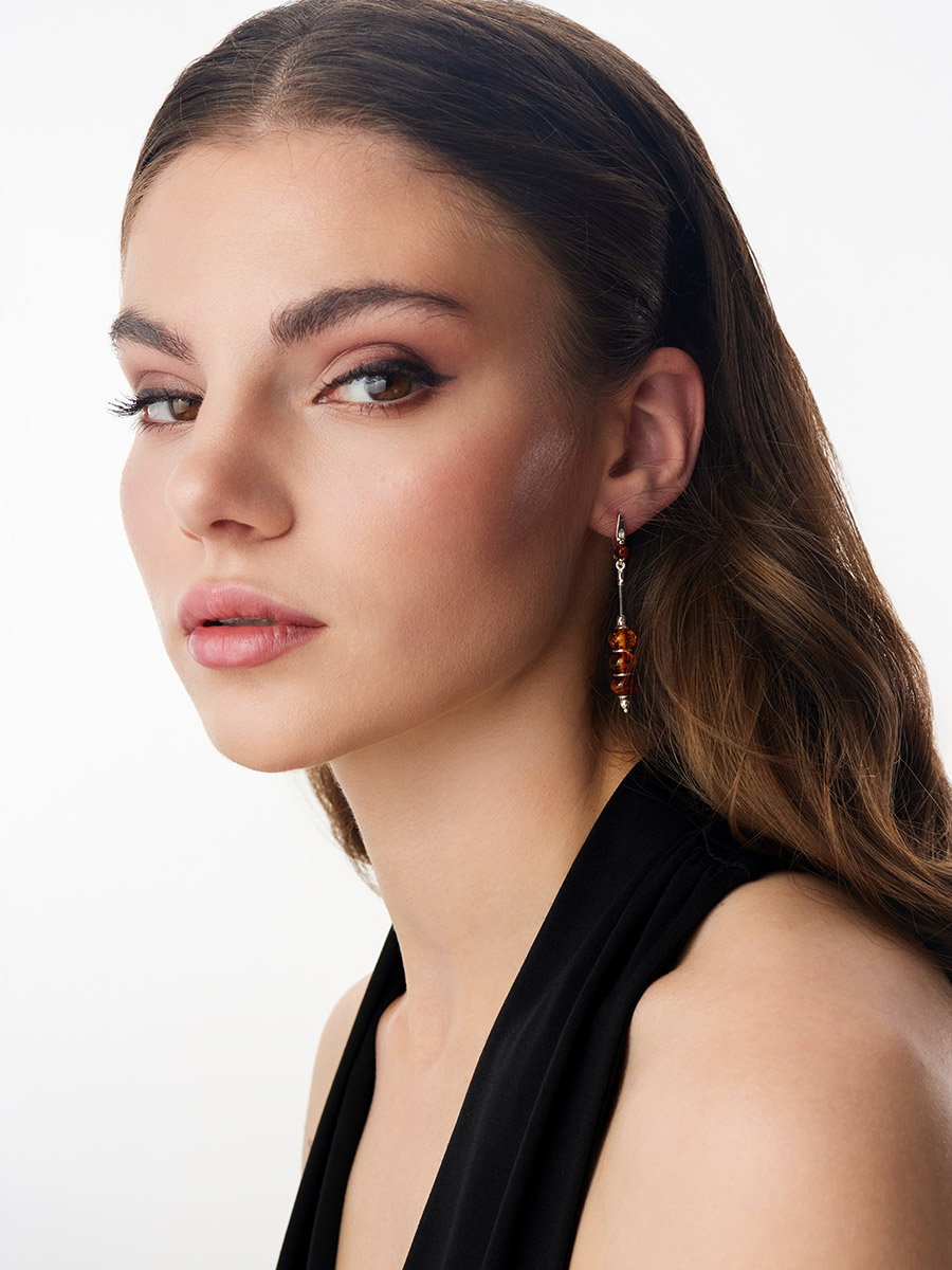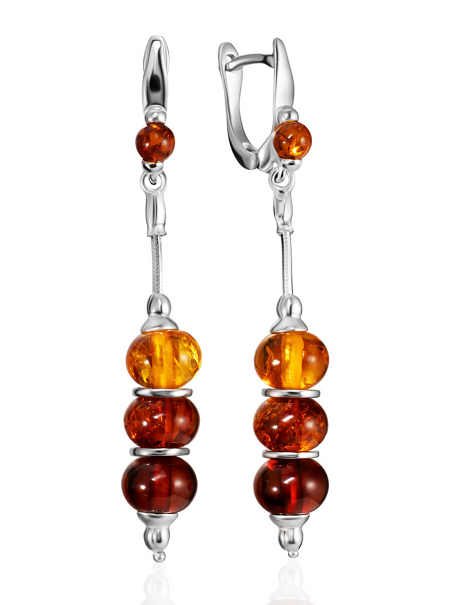 Длинные яркие серьги «Карамель» из натурального янтаря