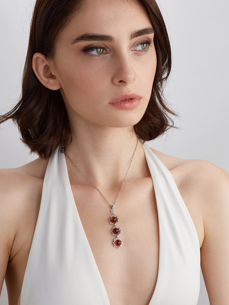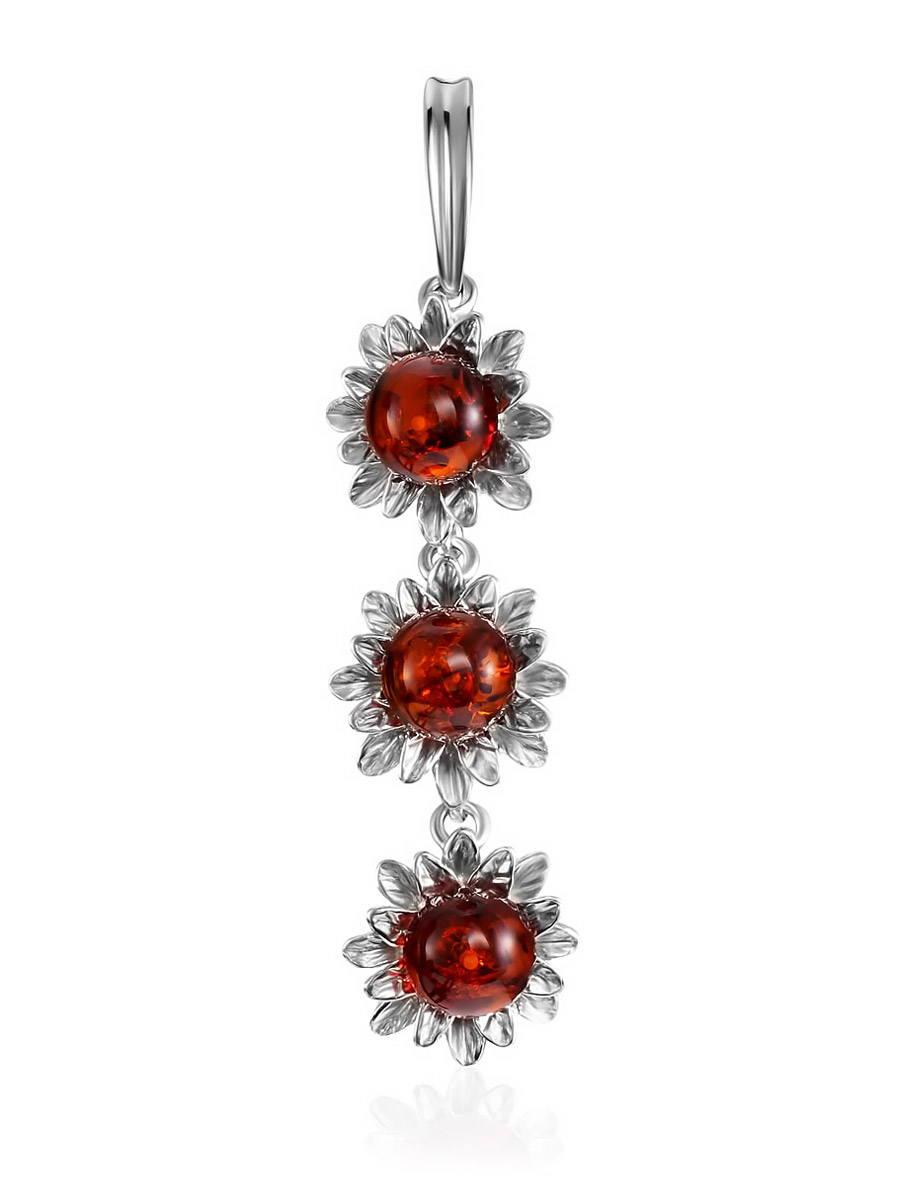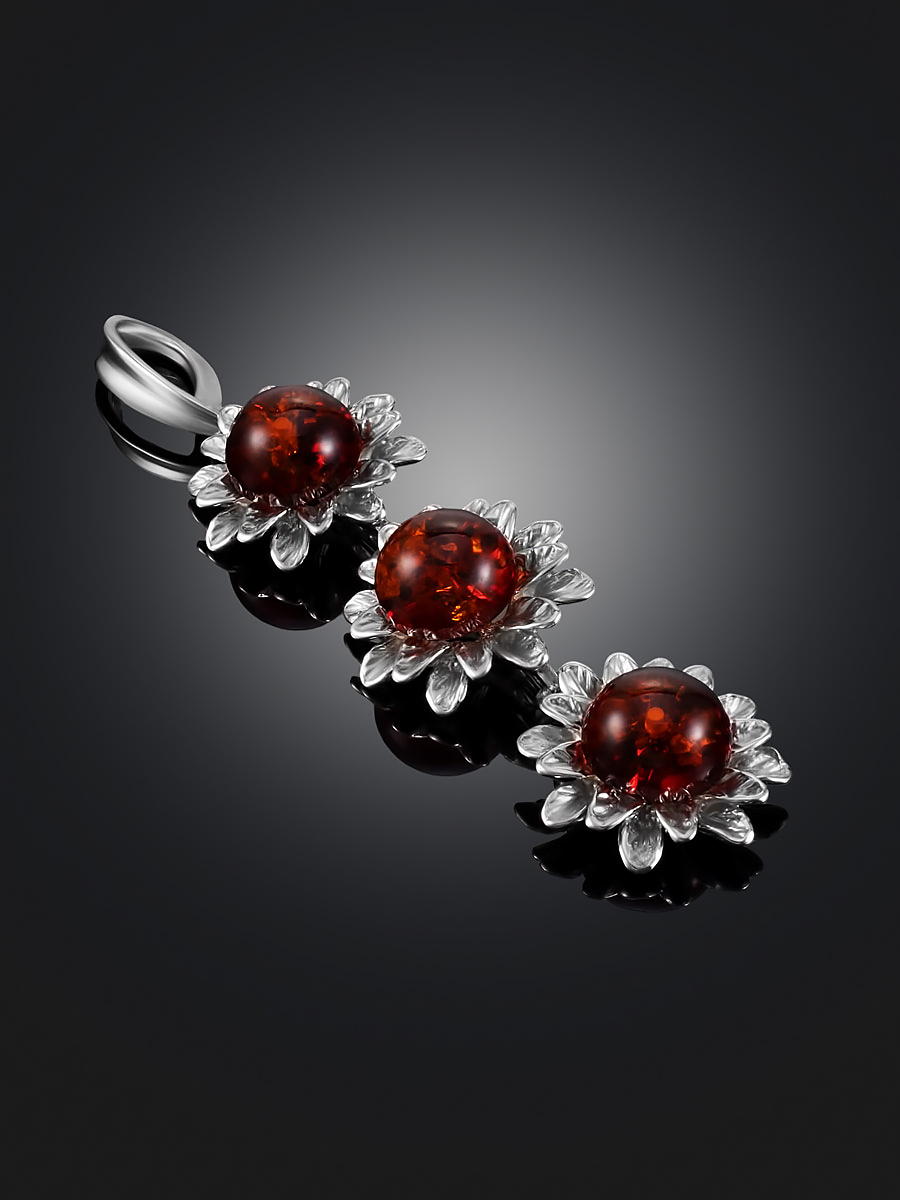 Длинный нарядный кулон «Астра» из натурального вишнёвого янтаря