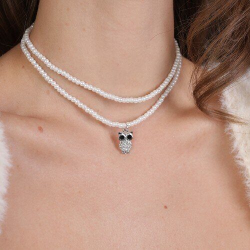 Двойной чокер из жемчуга, с подвеской "Сова", цвет: белый, арт. 018.397