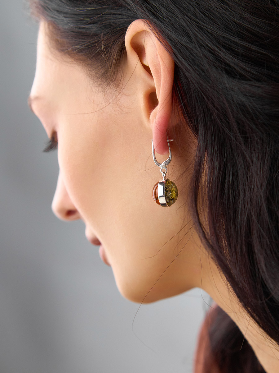 Двухцветные серьги «Сорбонна» из натурального балтийского янтаря