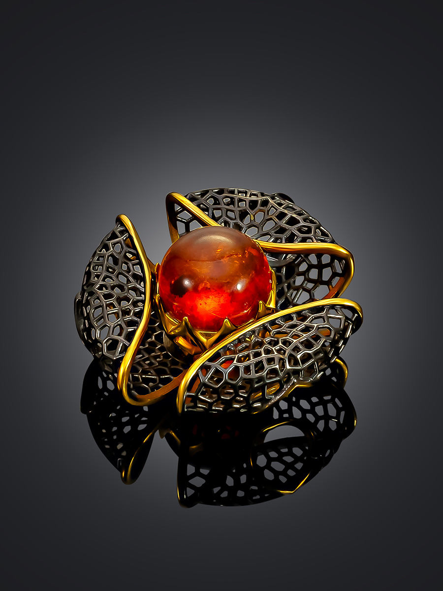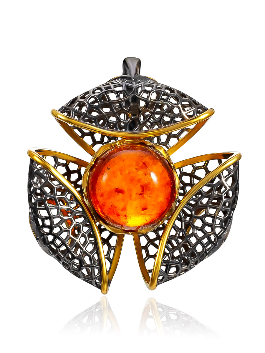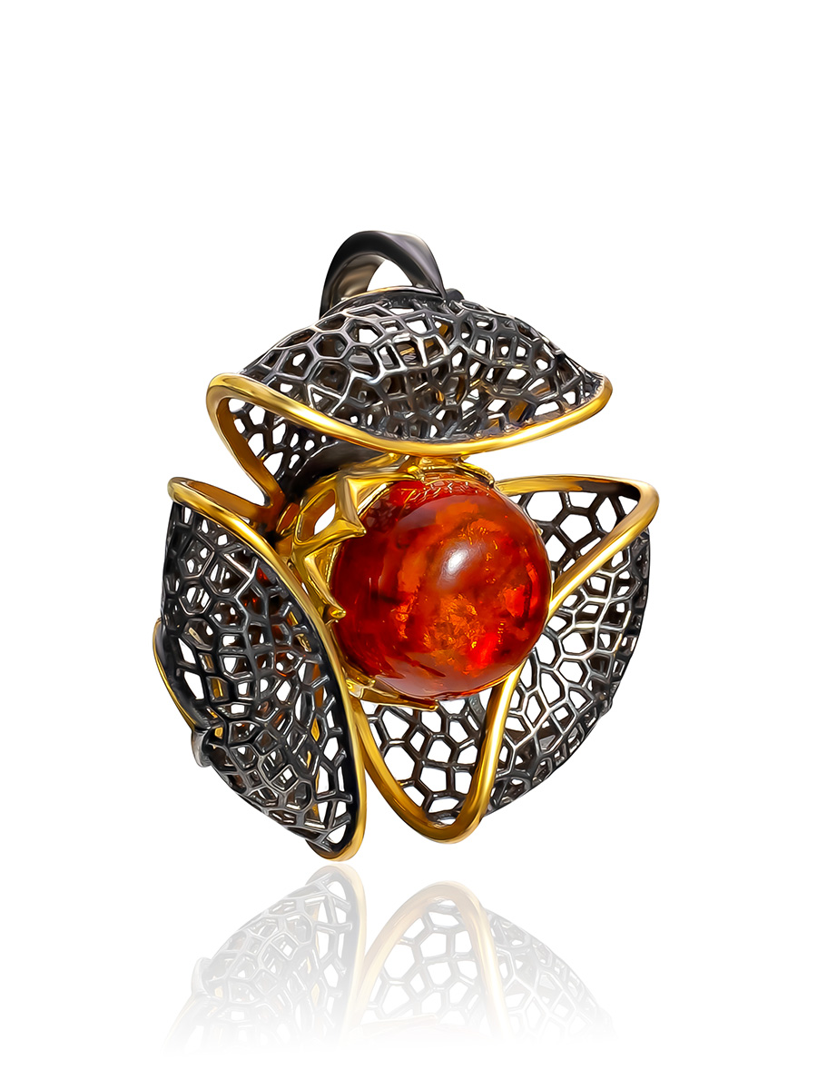 Эффектная ажурная подвеска с натуральным коньячным янтарём «Физалис»