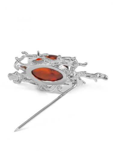 Эффектная брошь «Ландыш», покрытая позолотой и эмалью и украшенная натуральным янтарём