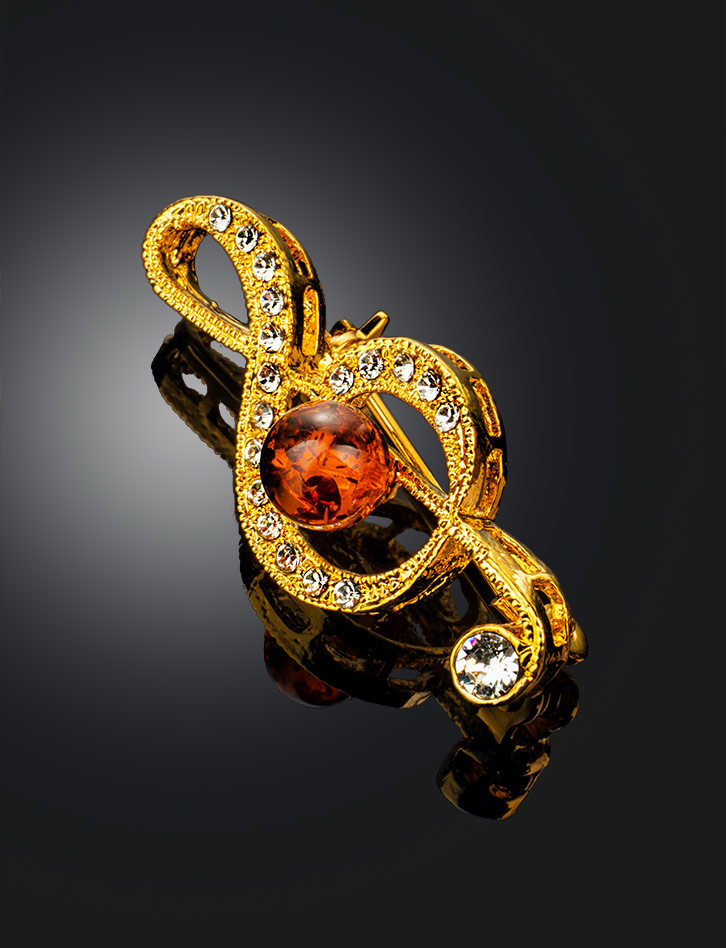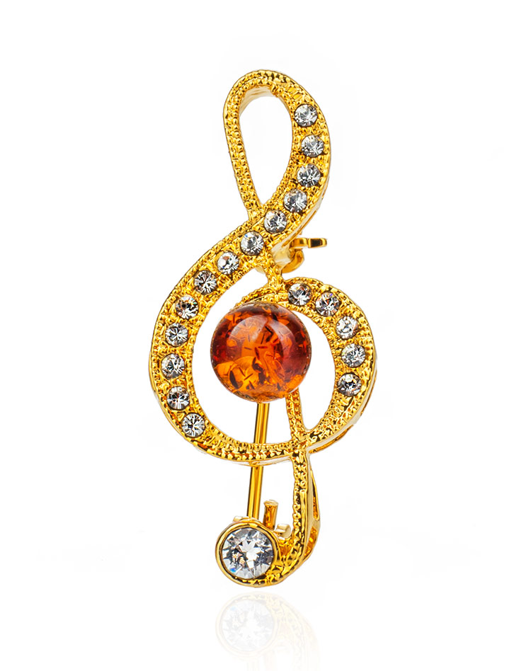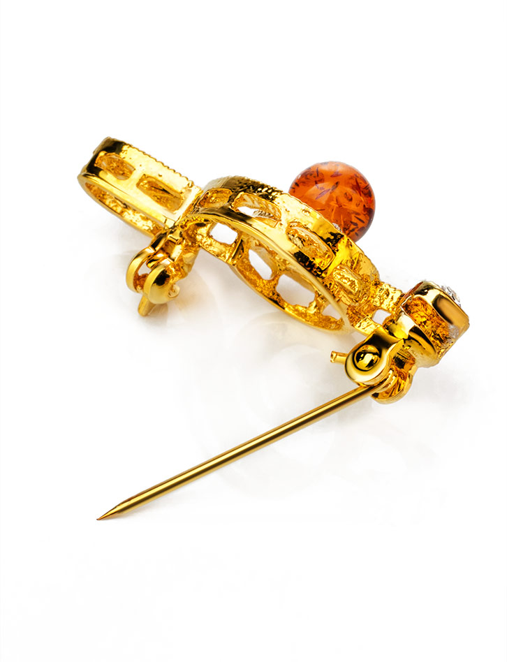 Эффектная брошь с кристаллами и натуральным балтийским янтарём Beoluna