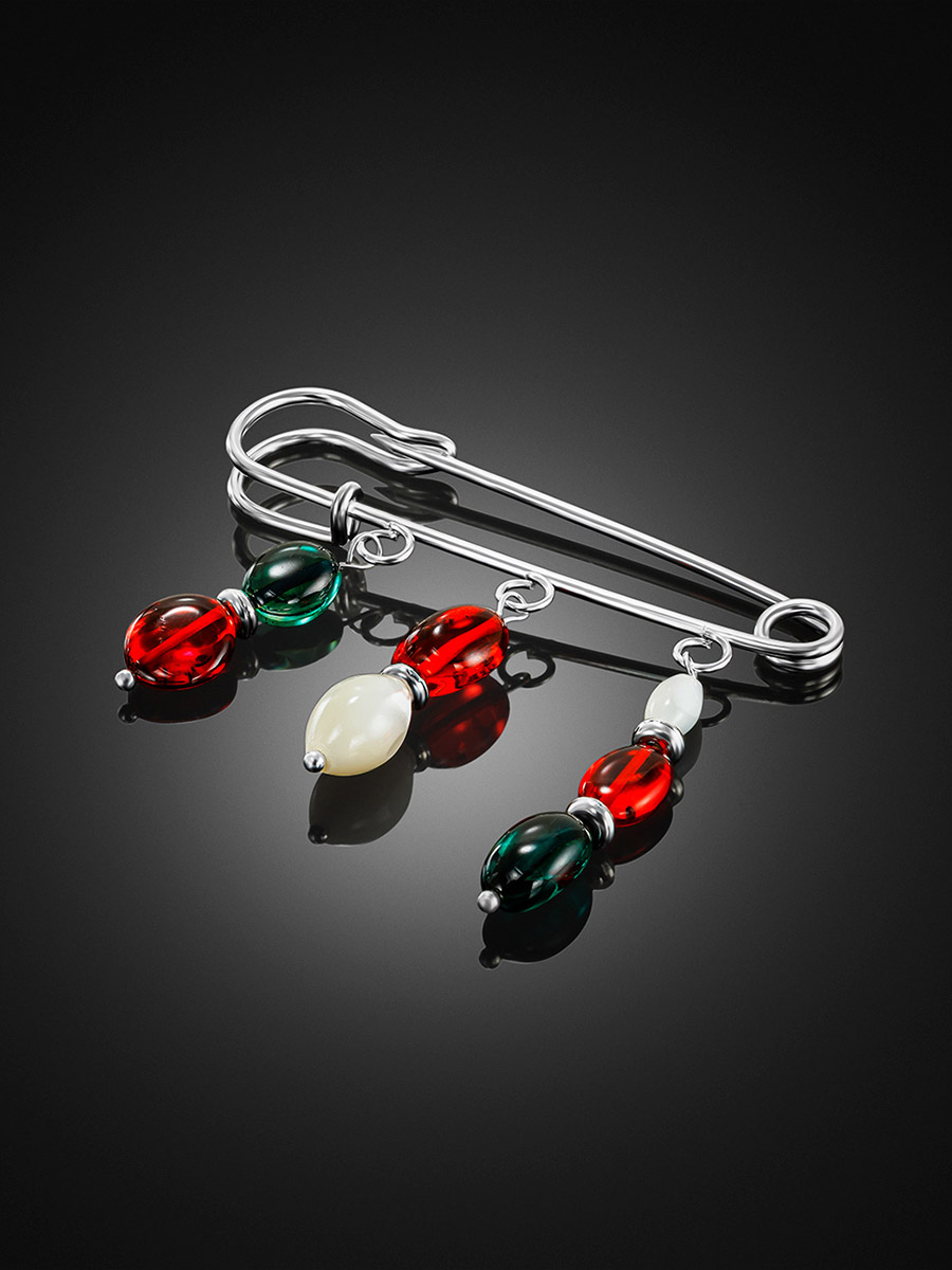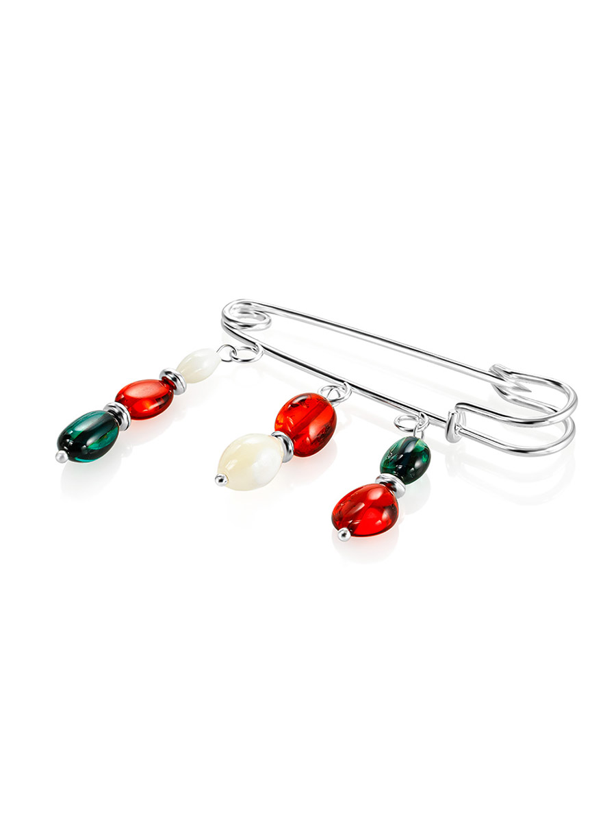 Эффектная брошь с подвесками из янтаря разных оттенков