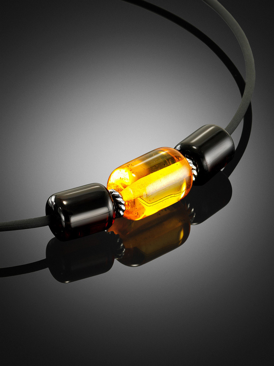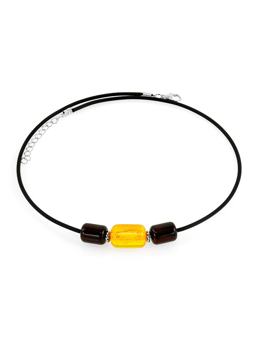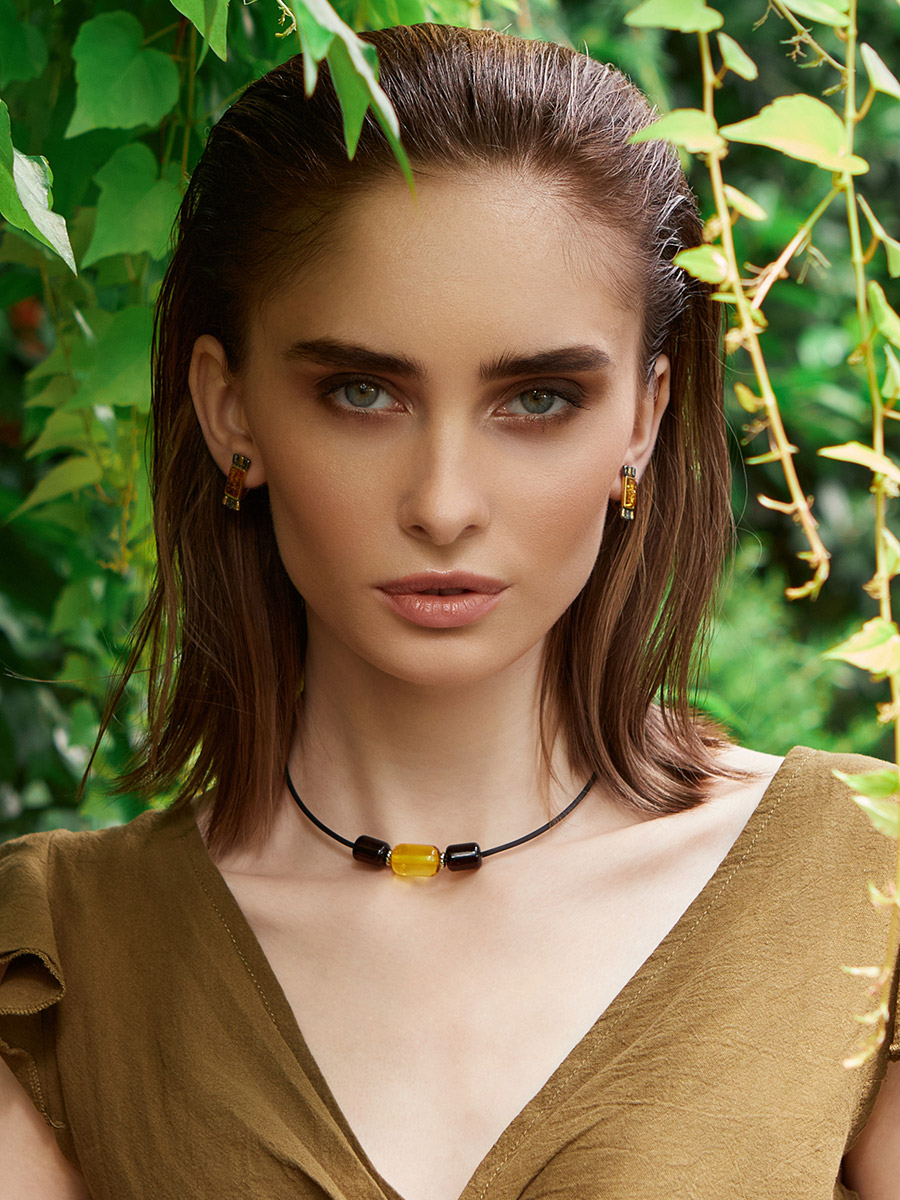 Эффектное и необычное колье-чокер «Оклахома» с натуральным янтарём
