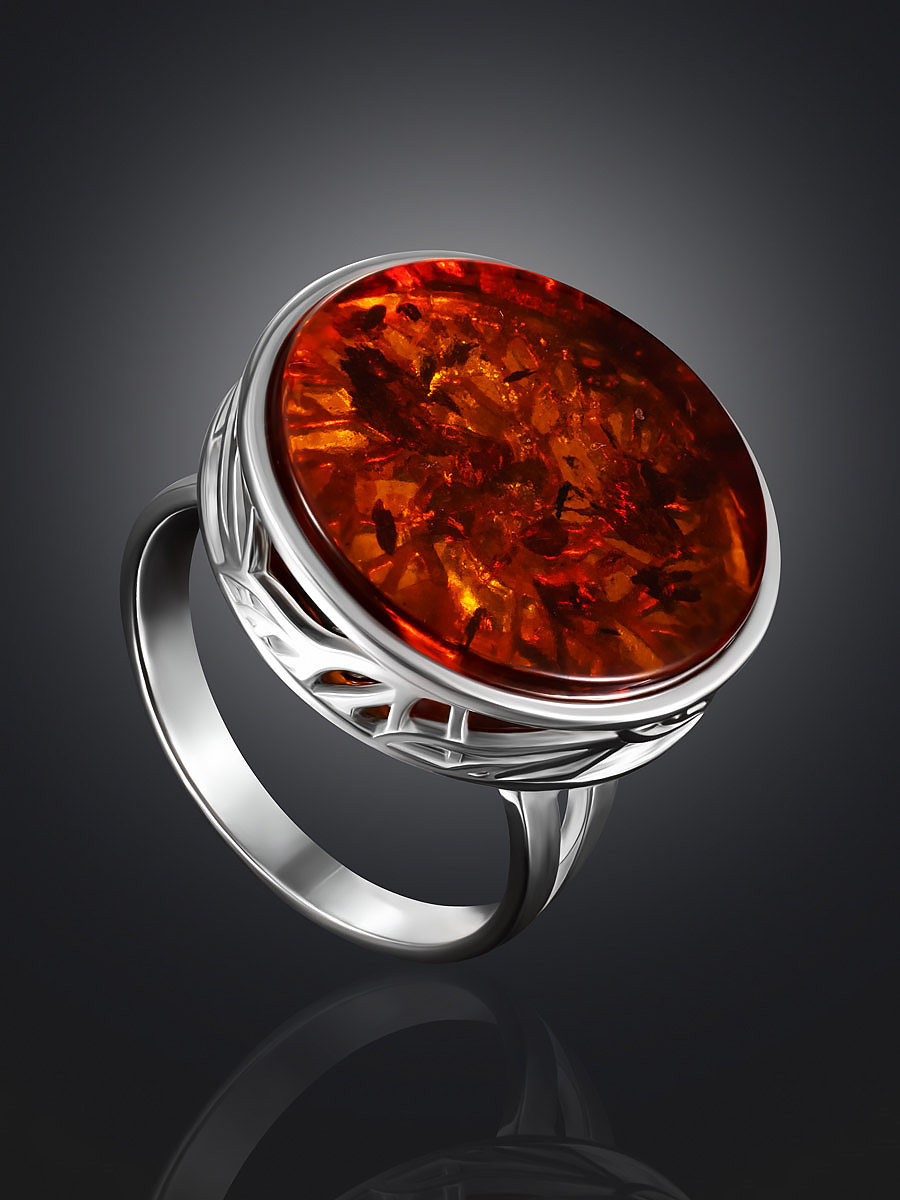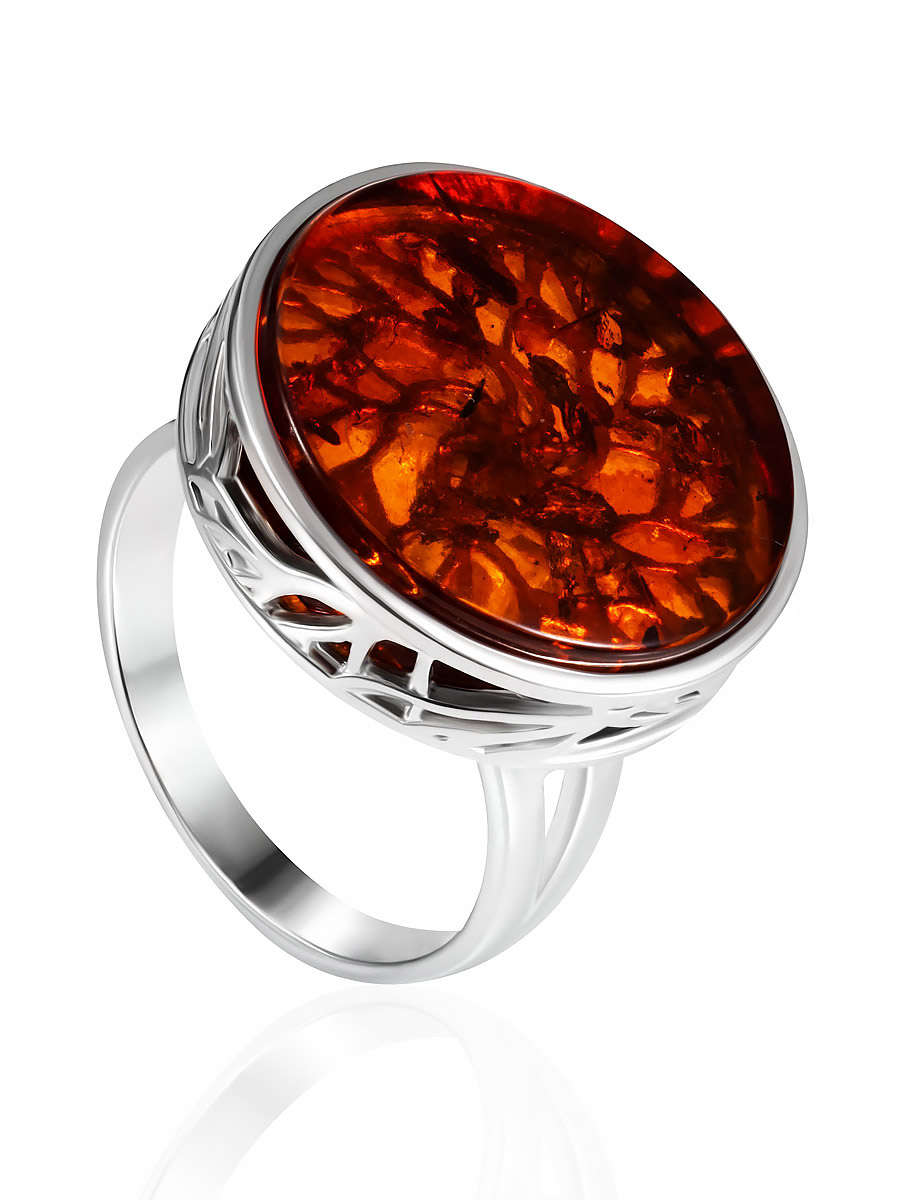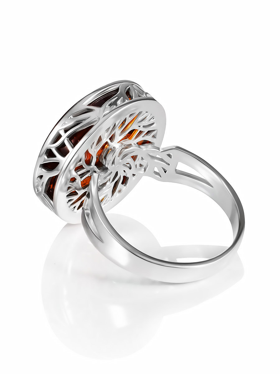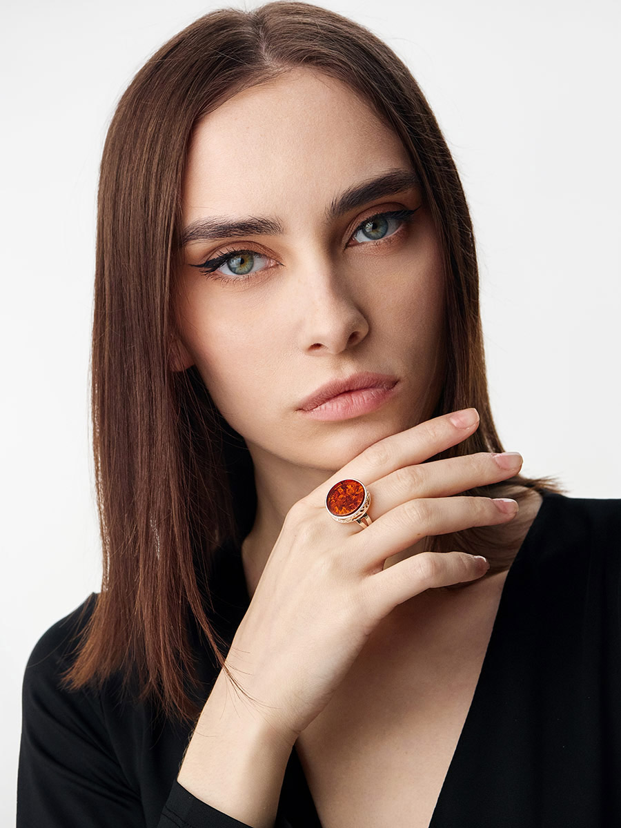 Эффектное кольцо «Бельтайн» с янтарём коньячного цвета