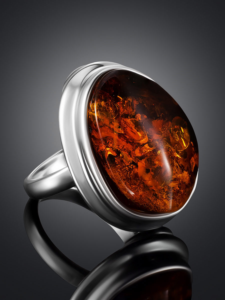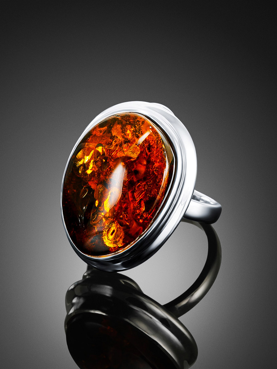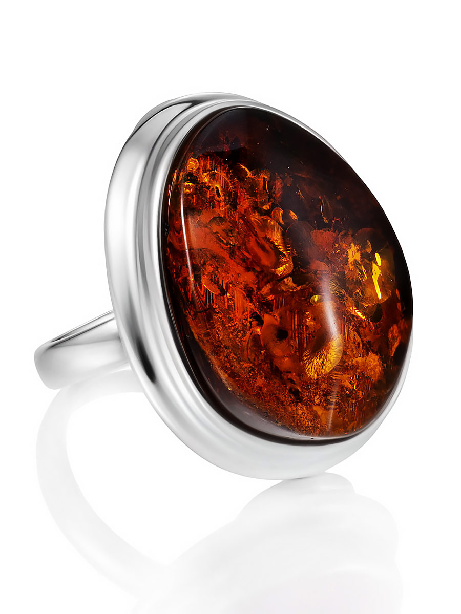 Эффектное кольцо из натурального балтийского янтаря коньячного цвета «Глянец»
