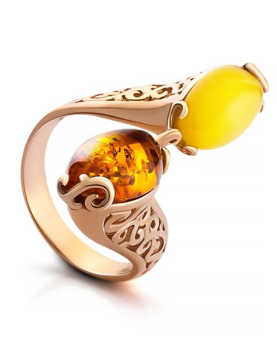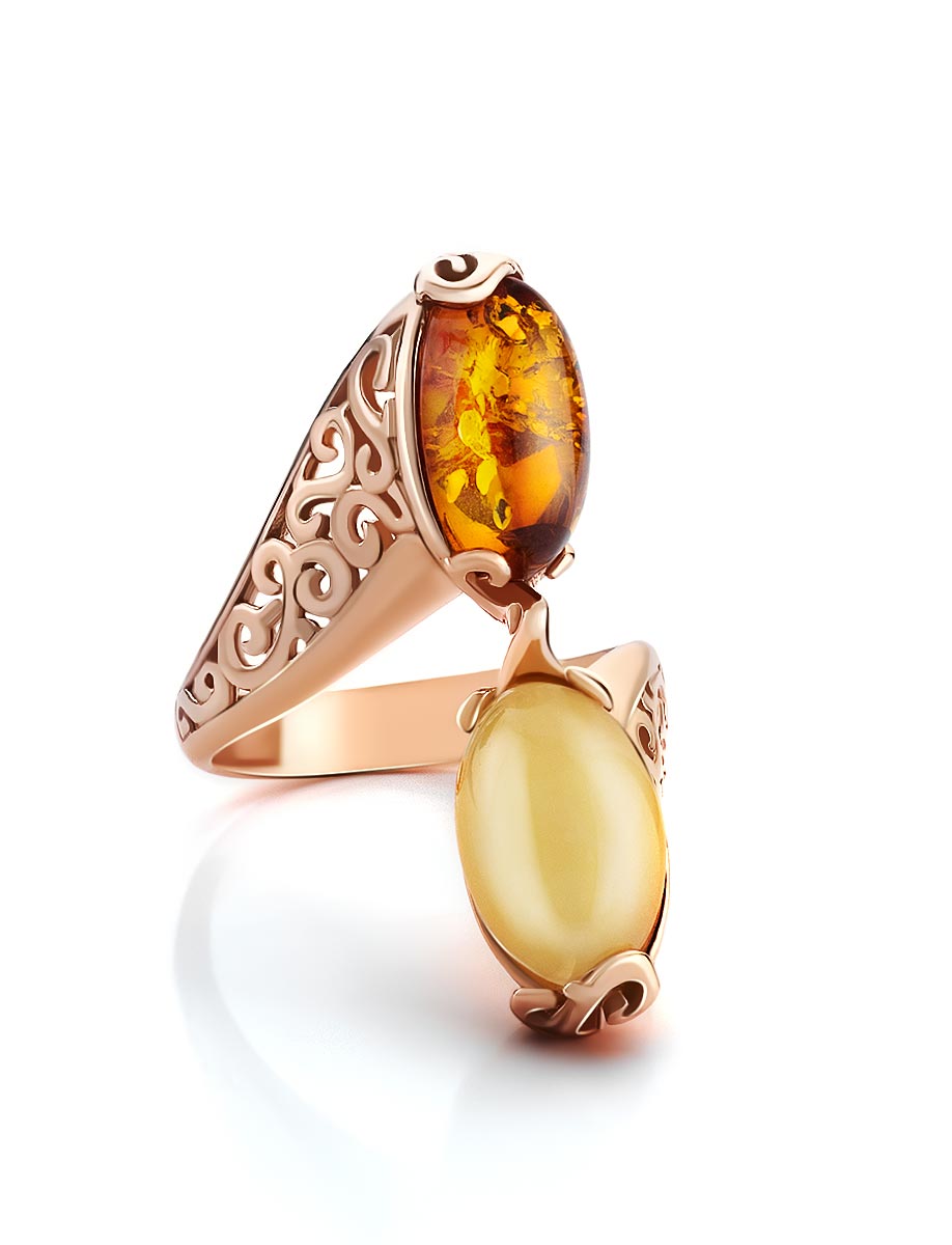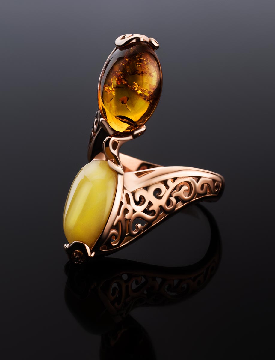 Эффектное кольцо из натурального янтаря двух оттенков «Касабланка»