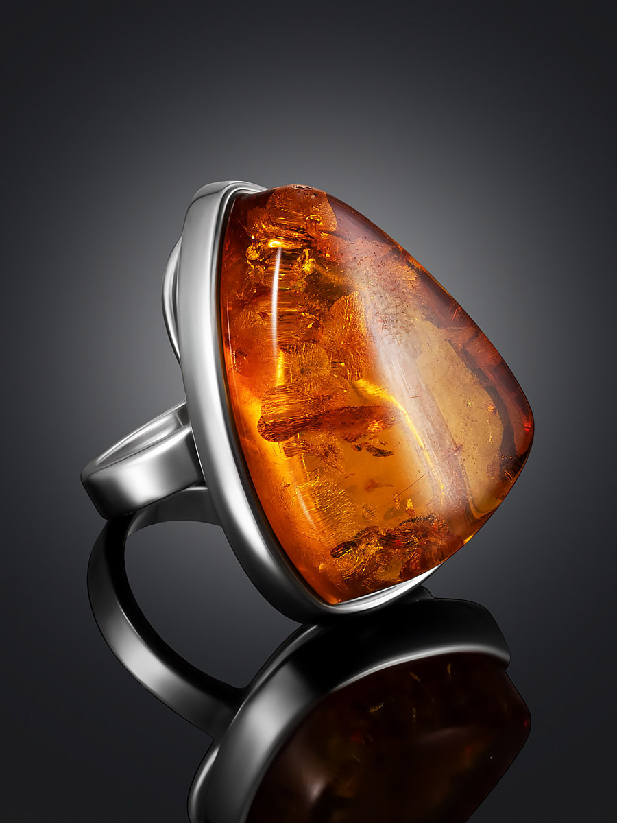Эффектное кольцо из натурального золотистого янтаря «Глянец»